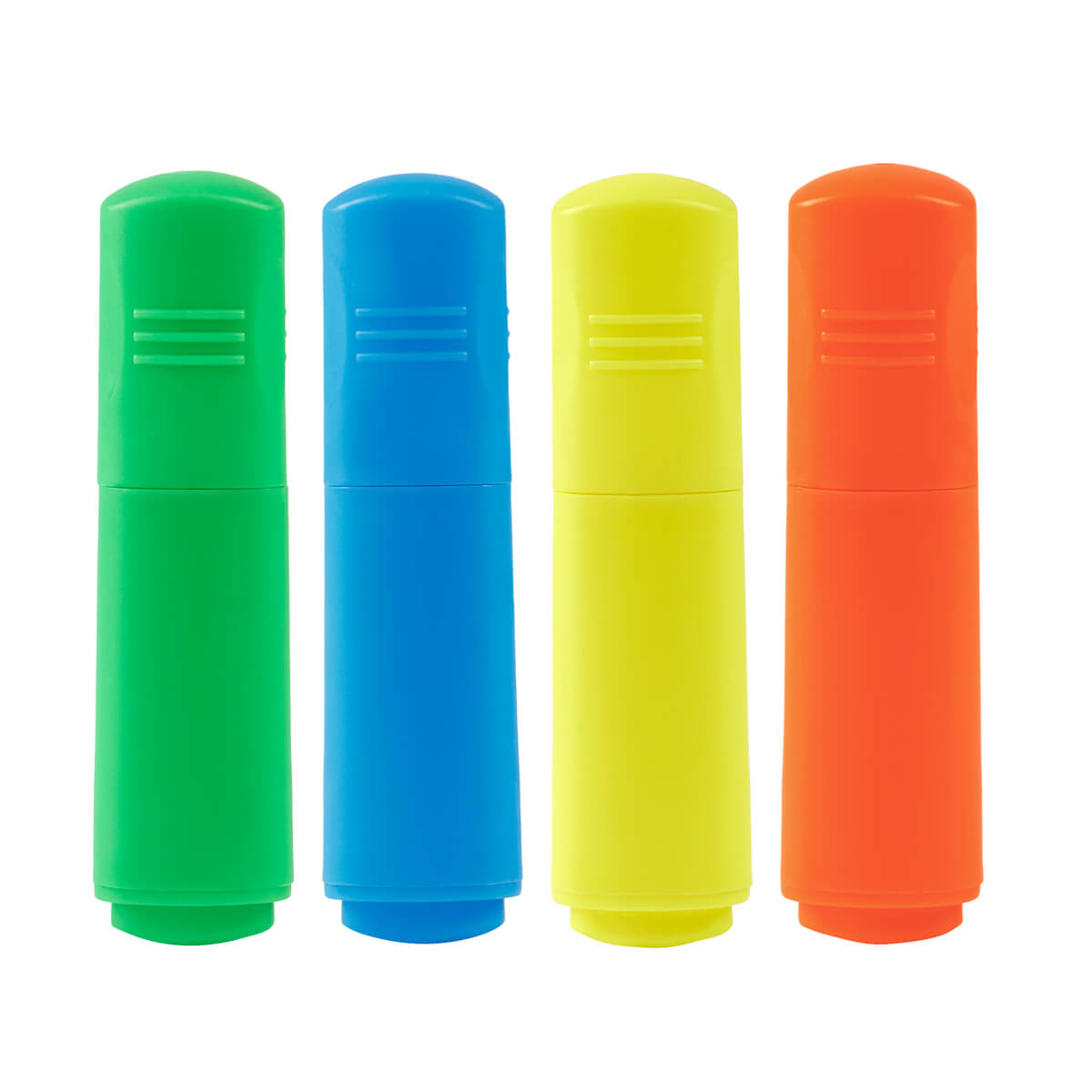 SET DE MARCATEXTOS DASH - Incluye 4 marcatextos en colores azul, amarillo, verde y naranja, en un práctico estuche ecológico con ventana. Diseño compacto, ideal para oficina o escuela.