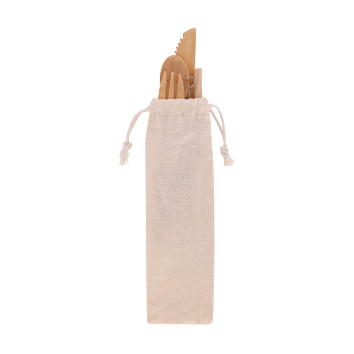 SET DE CUBIERTOS DEJA VU - Set de cubiertos de bambú. Incluye tenedor, cuchara, cuchillo, popote, cepillo limpiador y bolsa con jareta.