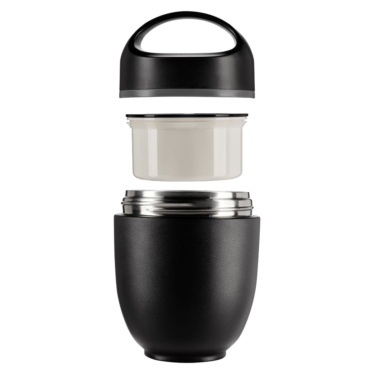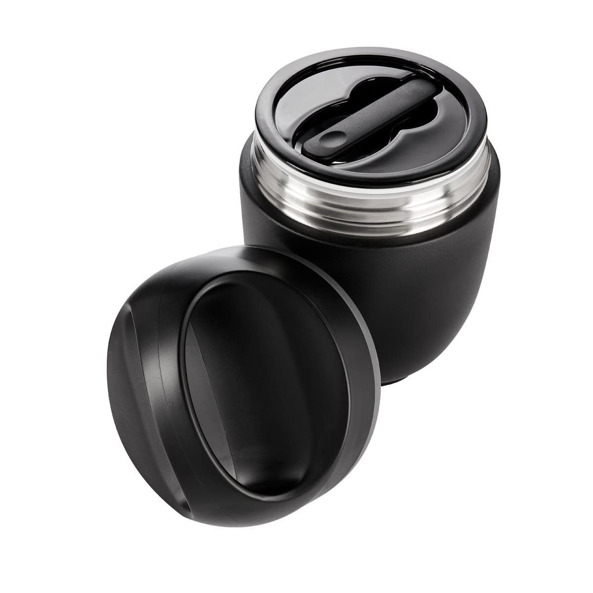 PORTAVIANDAS TANZI - Contenedor de alimentos con doble pared metálica. Sellado al vacío. Separador interno de plástico, tapa y cuchara plegable. Mantiene tus alimentos calientes por 6 horas. Su diseño integra un asa en la parte superior para transportar con facilidad y base anti-derrapante para mayor estabilidad. Incluye caja individual. No apto para uso en lavavajillas, ni microondas.