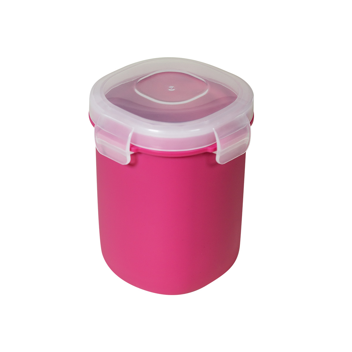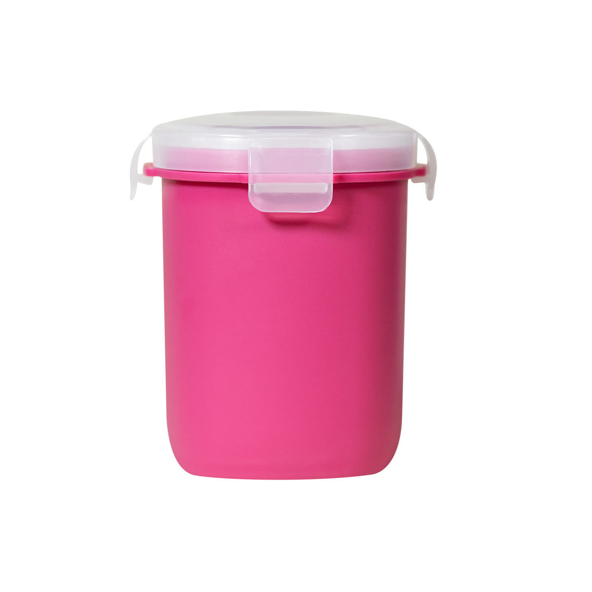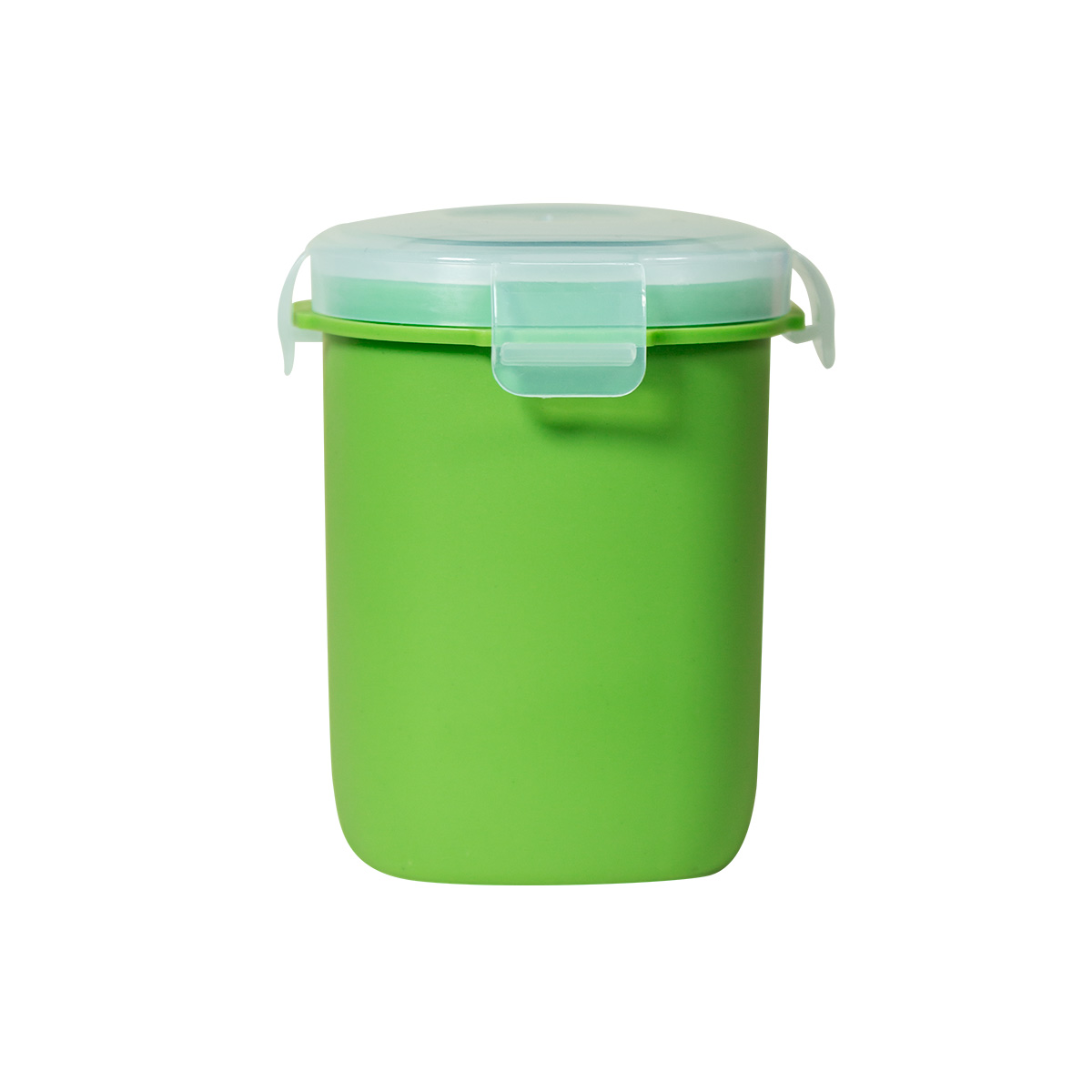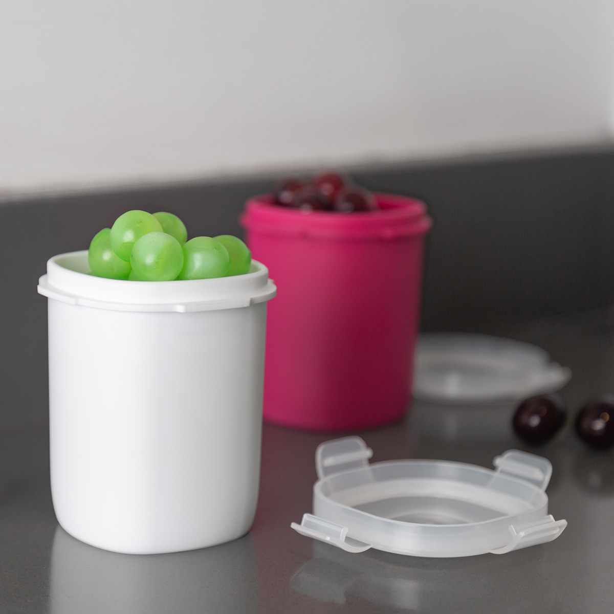 VASITO CONTENEDOR KEOP - Vasito contenedor de plástico con tapa con cuatro pestañas y sello hermético para evitar derrames. Compacto y versátil, es perfecto para llevar tus snacks sin preocupaciones.