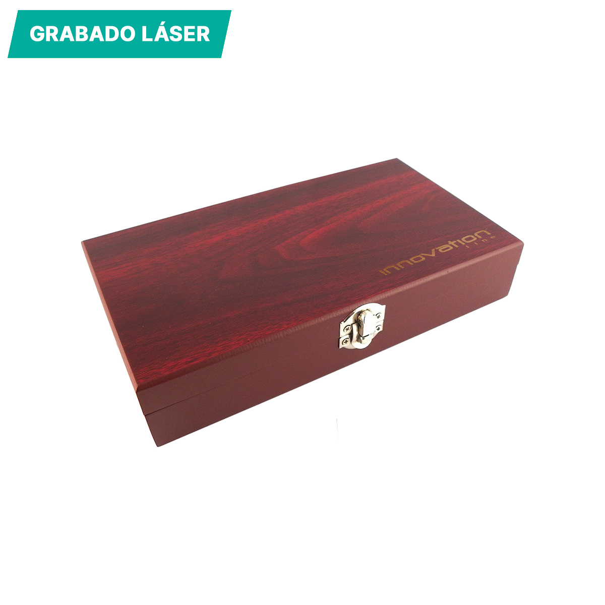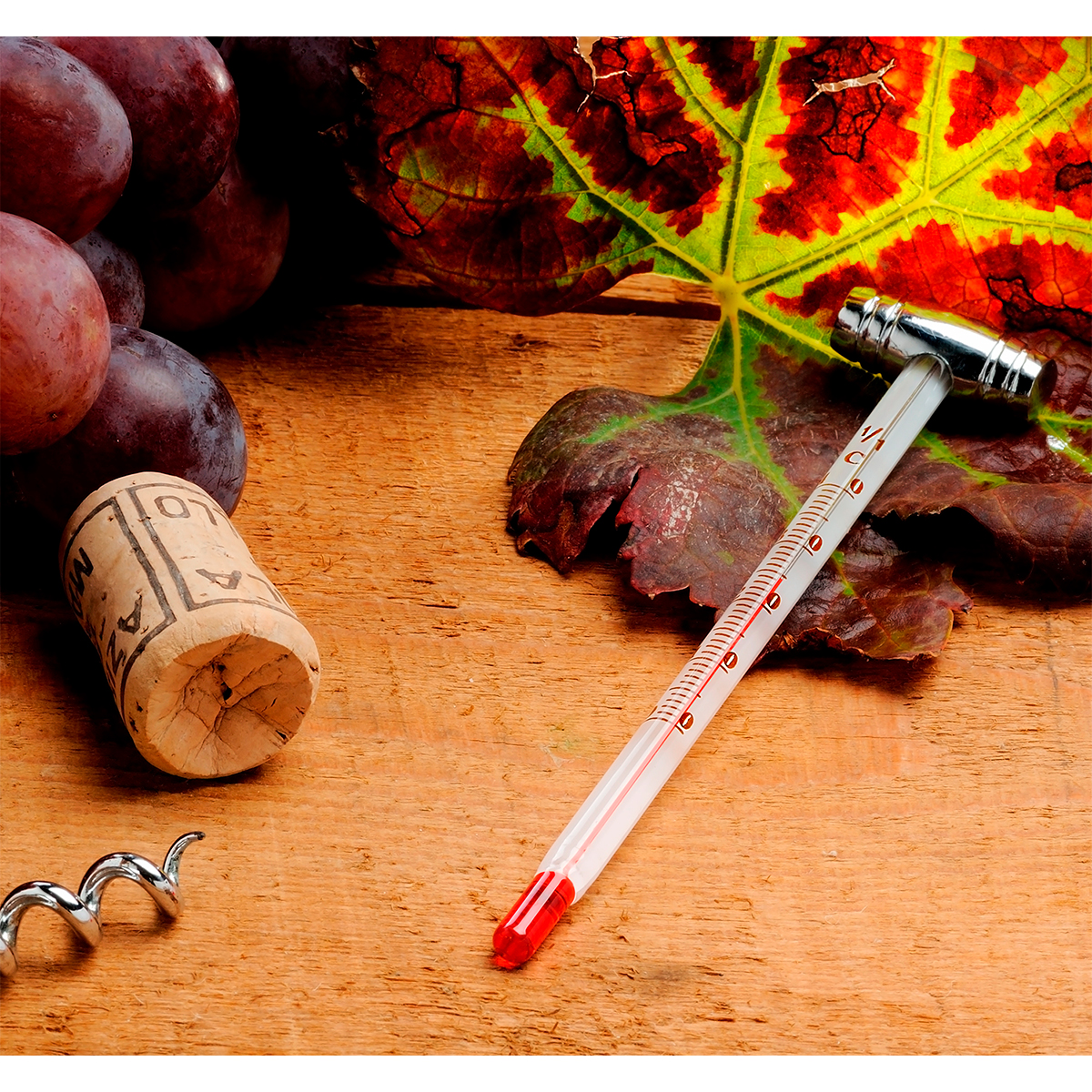 Set para vino Merlot. - Set para vino en caja de madera rectangular, con 5 accesorios en metal; saca corchos (con navaja y destapador), vertedor de vino, tapón corta gota, corta cápsula de vino y termómetro (vidrio).