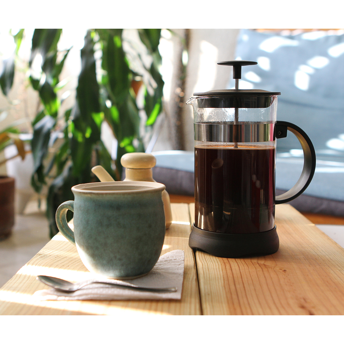 Prensa francesa de 1,000 ml. - Prensa francesa de cristal con capacidad de 1,000ML/34oz/3 Tazas Cafeteras, con émbolo y agarradera de plástico, funcional para café y té, resistente al calor.