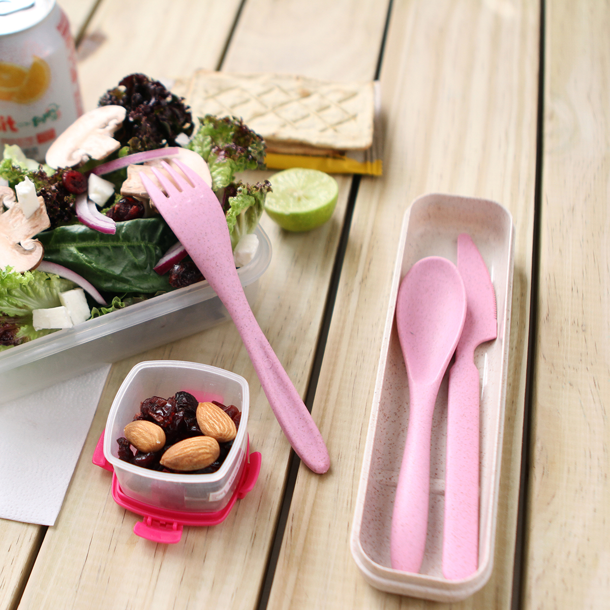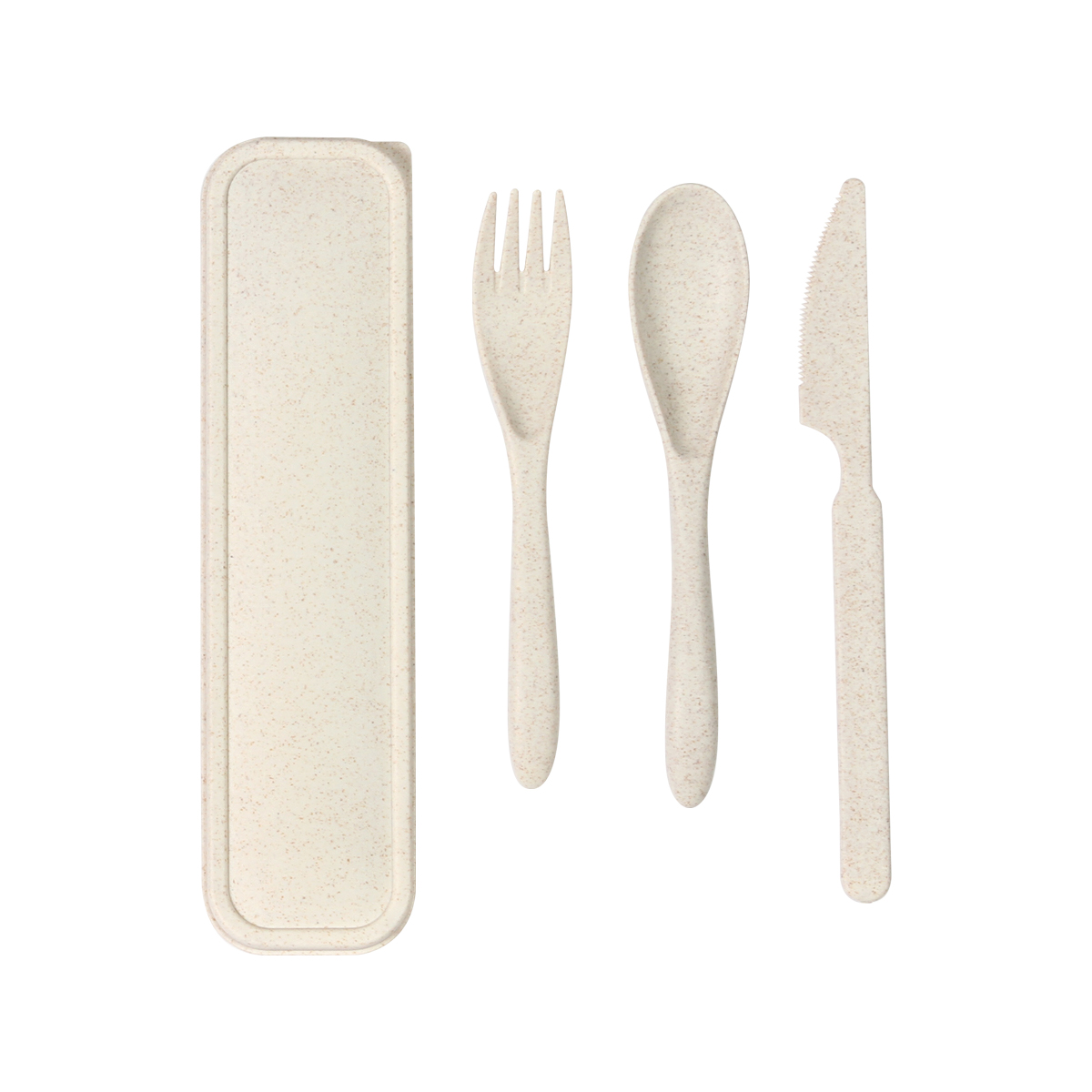 Set de cubiertos Hampi. - Set de cubiertos fabricados en fibra de trigo. Es una opción sostenible, práctica y duradera para disfrutar de tus comidas en cualquier momento. Con su cuchara, tenedor y cuchillo, tendrás todo lo necesario para disfrutar de tus comidas de manera cómoda y eficiente. Además, su estuche de fibra de trigo te permite almacenar y transportar los cubiertos de manera fácil y eficiente.