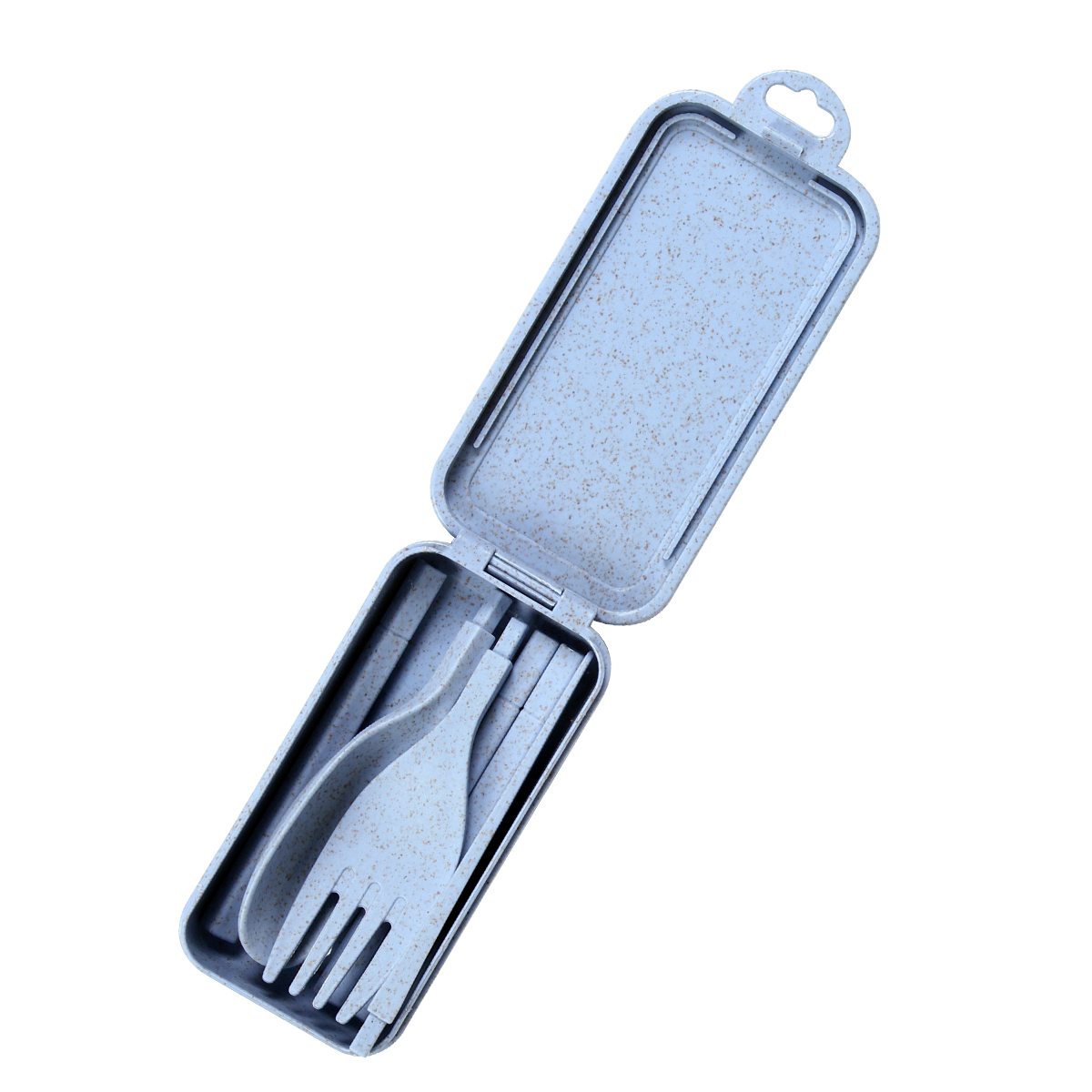Set de cubiertos Serang. - Set de cubiertos desarmables fabricados en fibra de trigo y polipropileno, contiene cuchara, tenedor, cuchillo y estuche del mismo material.  Incluye caja de cartón individual. Son ideales para viajar y responsables con el medio ambiente.