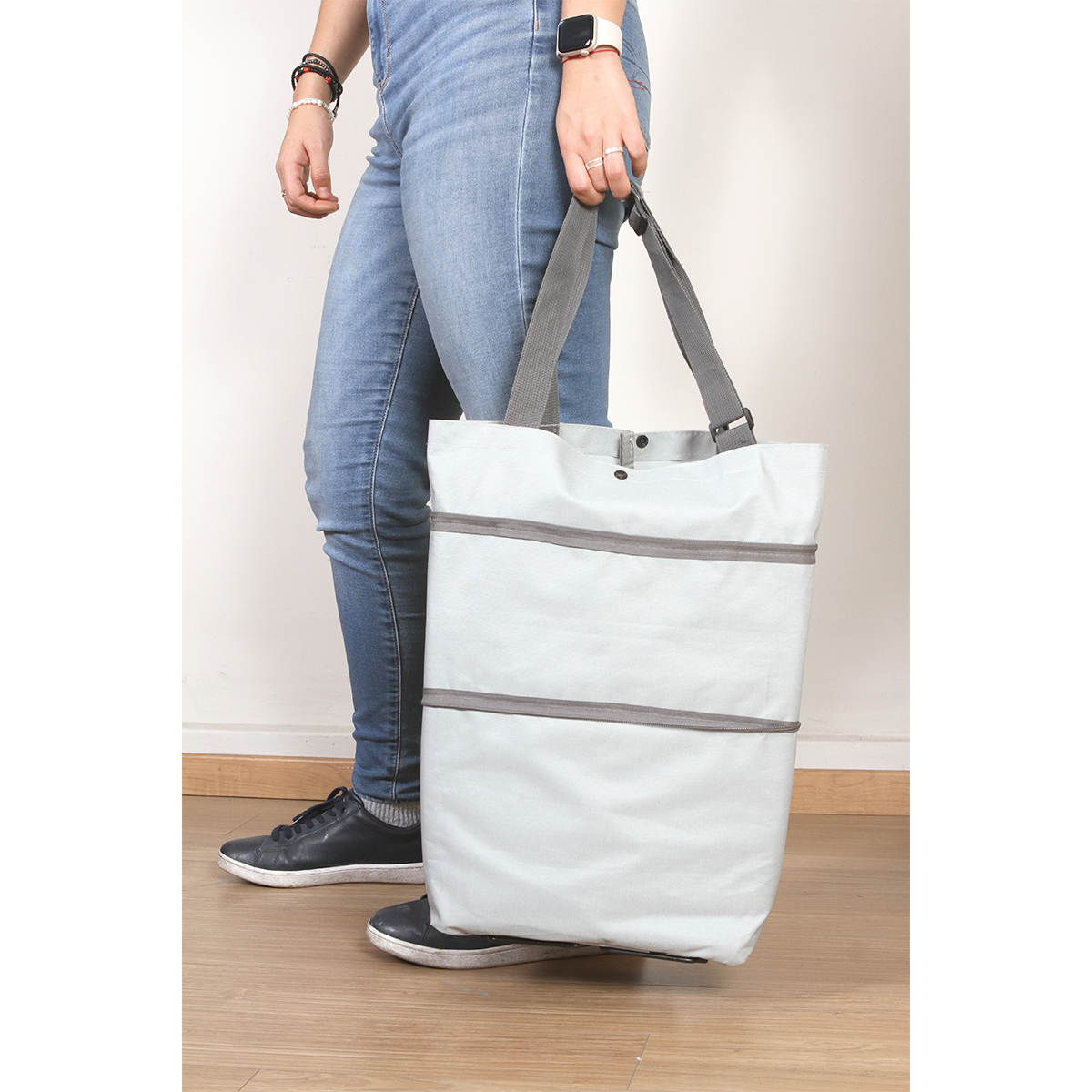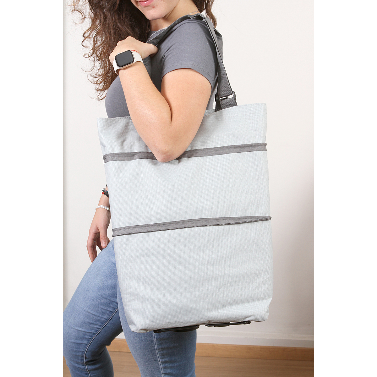 Carrito Plegable. - Carrito plegable fabricado en poliéster 600D con recubrimiento de PVC, base de MDF, correas de nylon ajustables, resistente al desgaste y llantas de goma. Se convierte en una practica y reutilizable bolsa de mano, es ideal para ir de compras de manera cómoda. Capacidad de carga 10 kg.