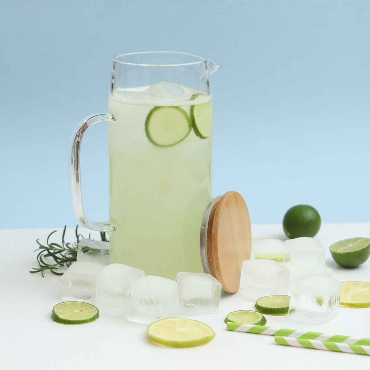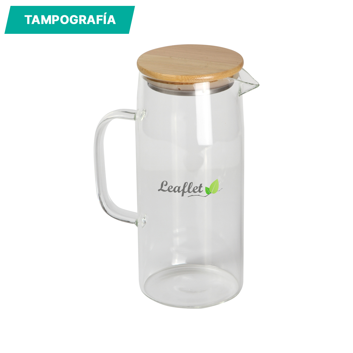 Jarra Orsha. - Jarra de vidrio de borosilicato con tapa de bambú. Capacidad de 1000 ml. Incluye caja de cartón individual. Perfecta para preparar y servir bebidas frías.