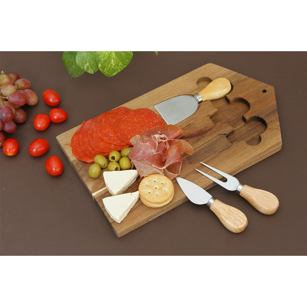 Tabla de quesos Trouans. - Tabla de quesos fabricada en madera de acacia acabado con laca tipo mate para una mejor duración. Compartimentos especiales con tres utensilios de acero inoxidable y mango de madera de acacia. Ideal para servir quesos, carnes frías y acompañamientos en reuniones o momentos especiales.
