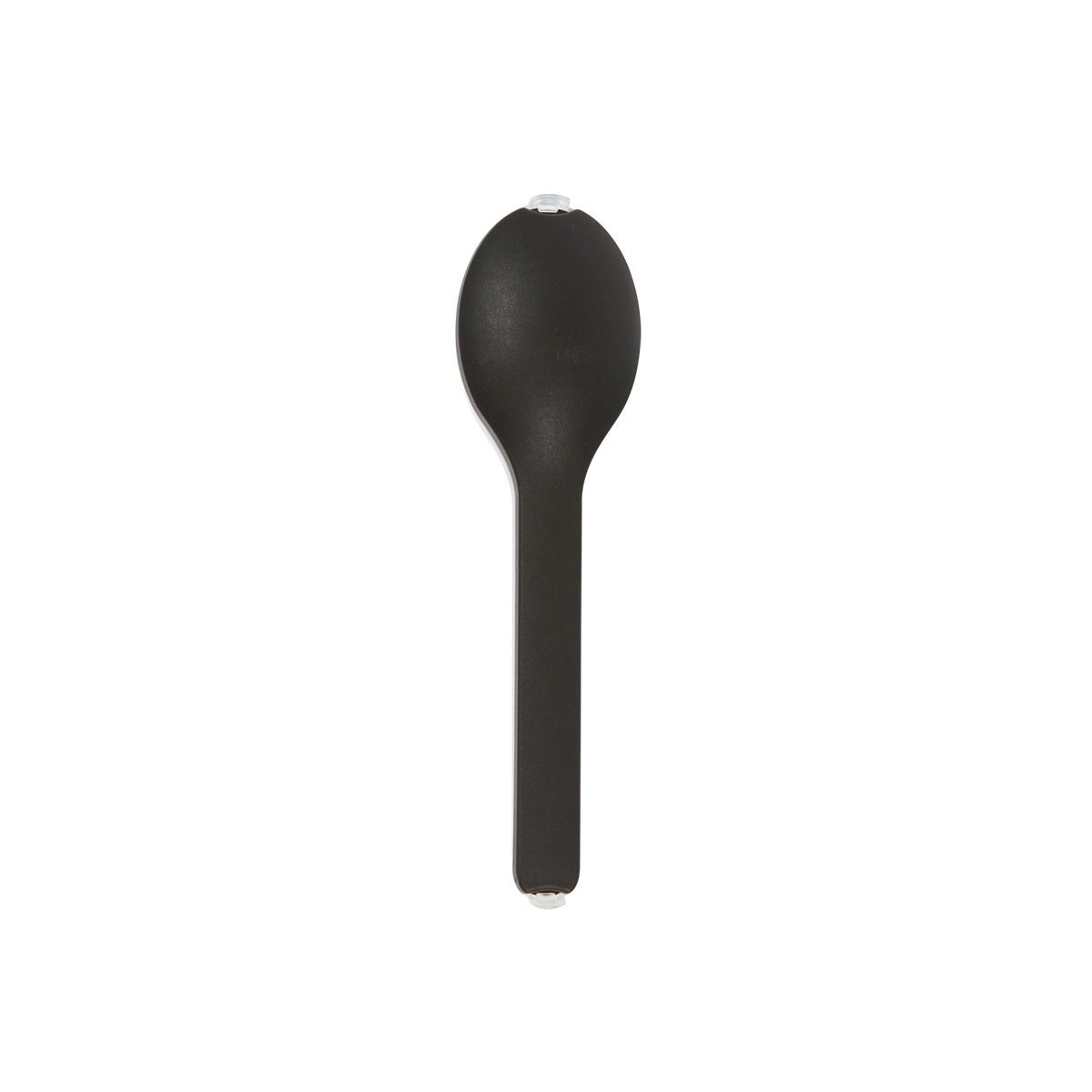 Juego Lachy. - Juego de utensilios fabricados en acero inoxidable, incluye cuchara, tenedor y cuchillo. Su estuche en forma de cuchara fabricado en polipropileno con tapa traslúcida ayuda a resguardarlos mejor.