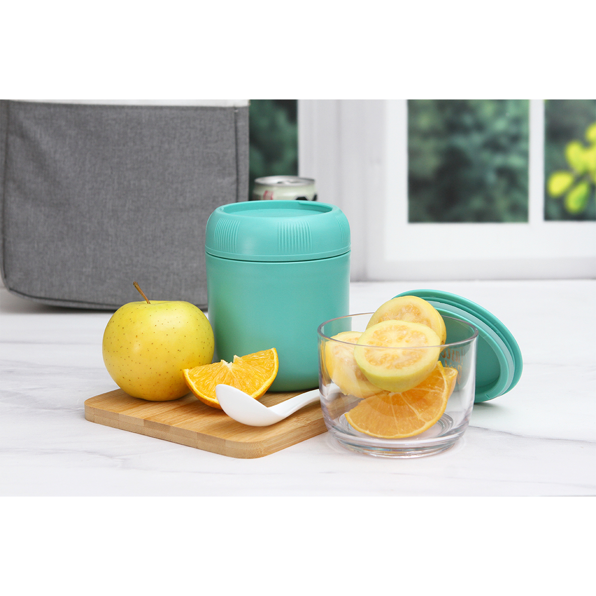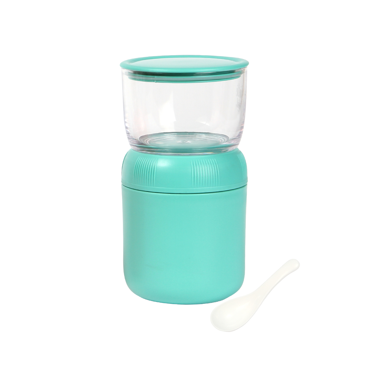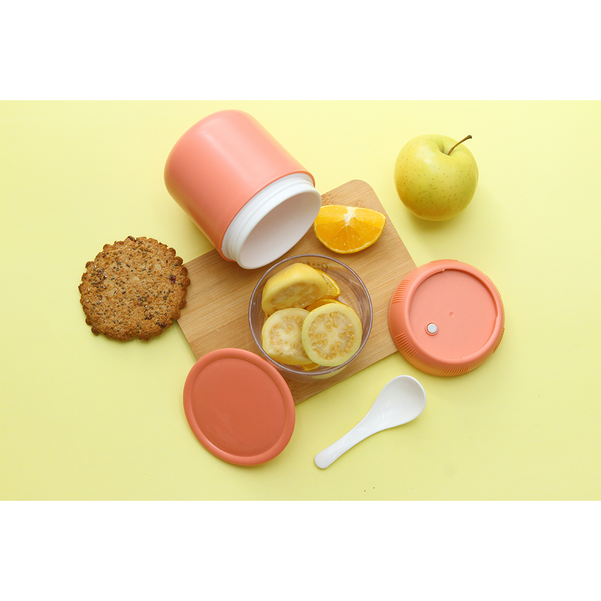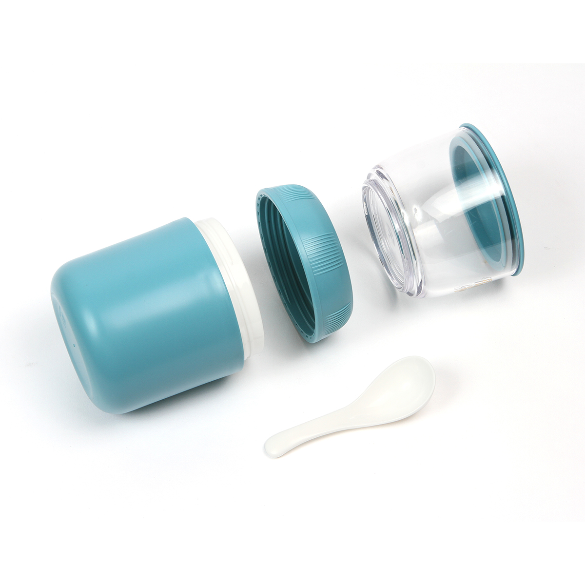 Contenedor Grimsby. - Contenedor de alimentos fabricado en polipropileno (PP). Incluye dos recipientes pequeños, uno de ellos traslúcido y una cuchara. Capacidad por ambos contenedores es de 710 ml. Contenedor grande: 380 ml. Contenedor pequeño: 330 ml.