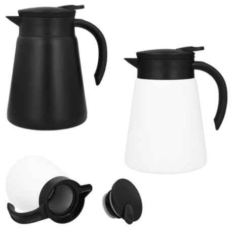 KANKAN Jarra con doble pared de acero inoxidable, asa, boquilla y tapa enroscable de plástico. Cuenta con botón a presión para servir tus bebidas.