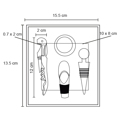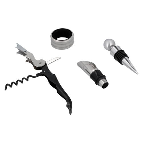 CARLOT Set de vinos con 4 accesorios: sacacorchos, boquilla, tapón para vino y corta gotas. Incluye estuche.