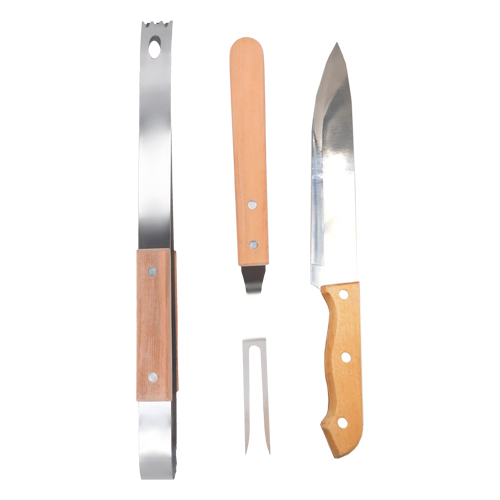BISTRO Set de BBQ. Incluye 1 pinza, 1 cuchillo, 1 tenedor trinchante y estuche de poliéster.