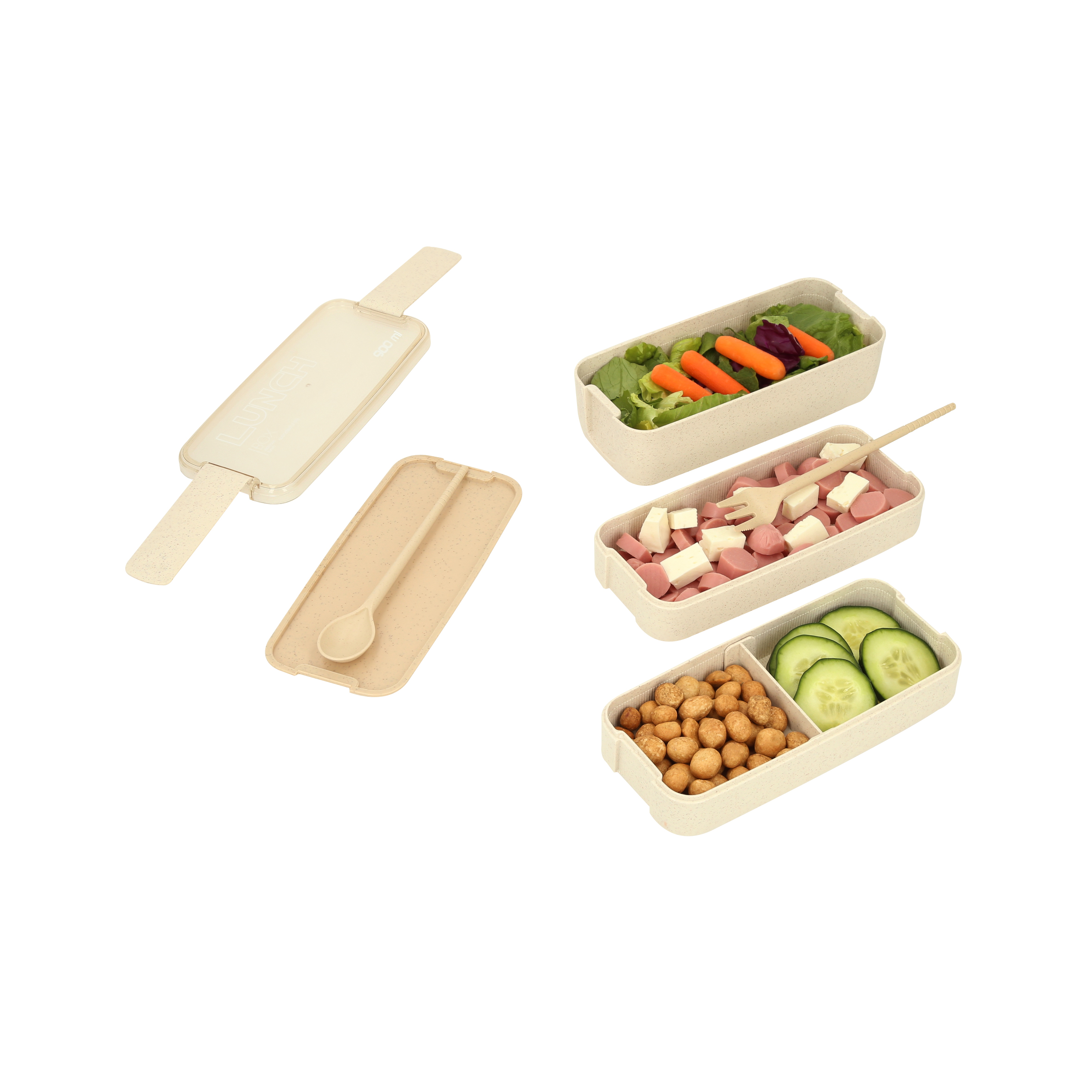 NIGUIRI Contenedor para alimento de wheat straw, de 3 niveles, incluye separador de comida, cuchara y tenedor. Capacidad de 900 ml completo.