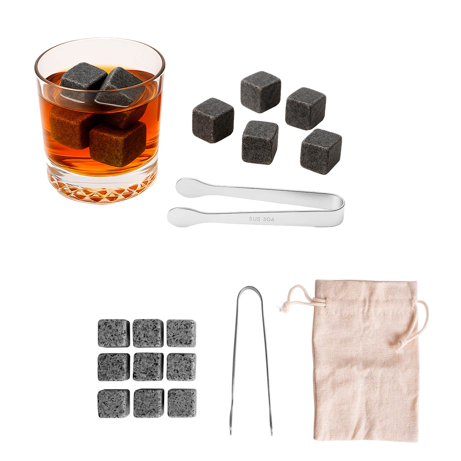 JEREZ Set de 6 hielos de piedra natural con pinzas. Incluye caja de regalo y funda.