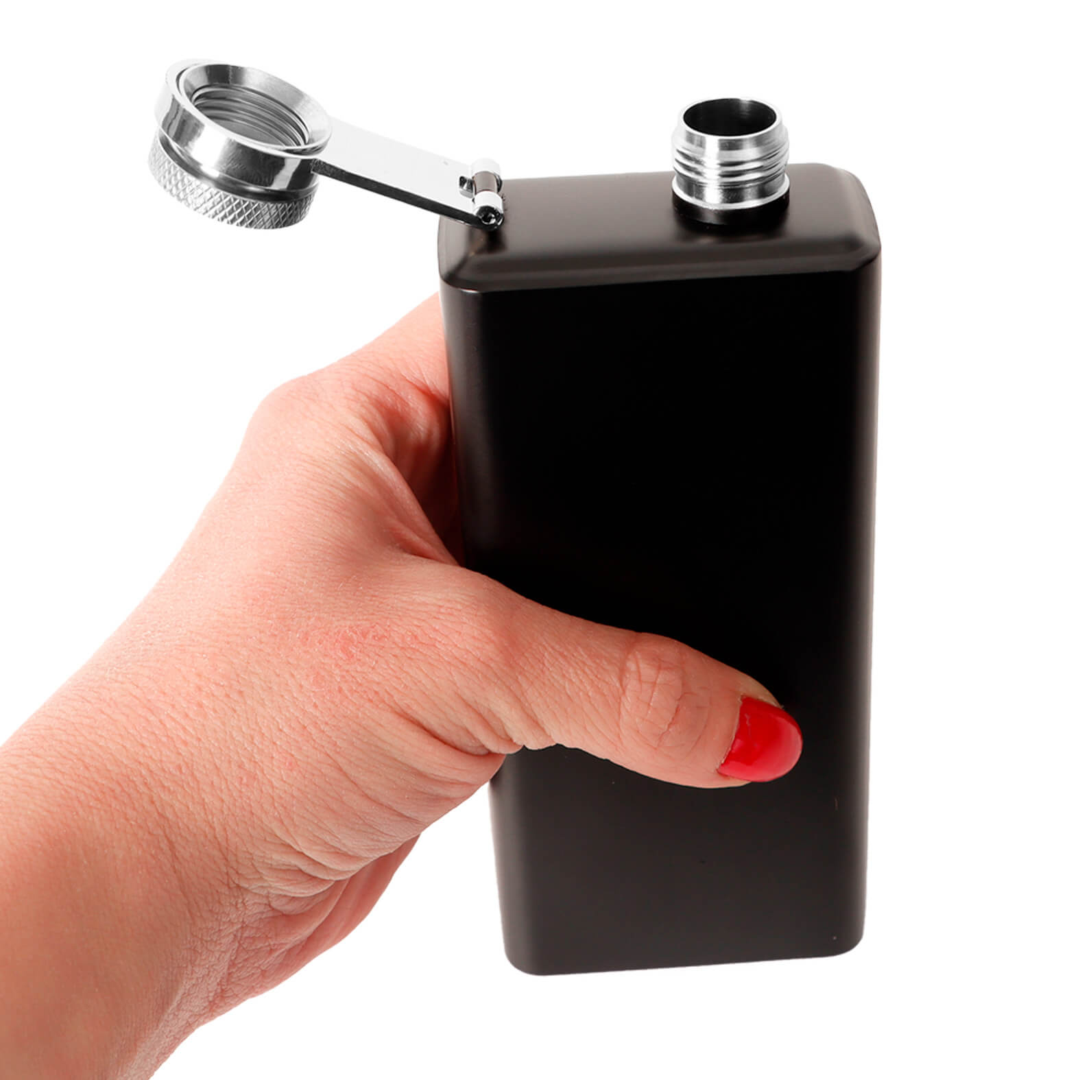 ASTIL Licorera rectangular con acabado mate y tapa enroscable sujeta al cuerpo.