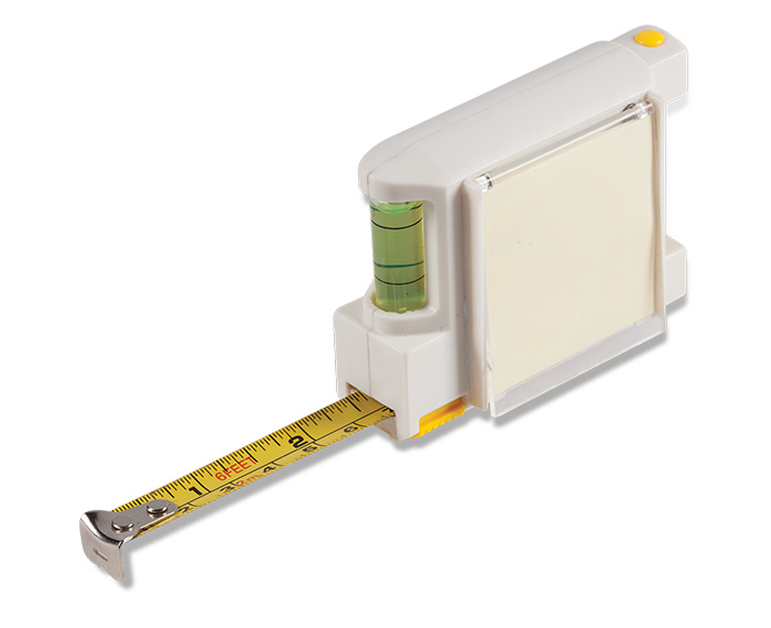 WOODS - Flexómetro industrial de 2 m. de longitud, con seguro, nivelador, notas adhesivas y mini bolígrafo.