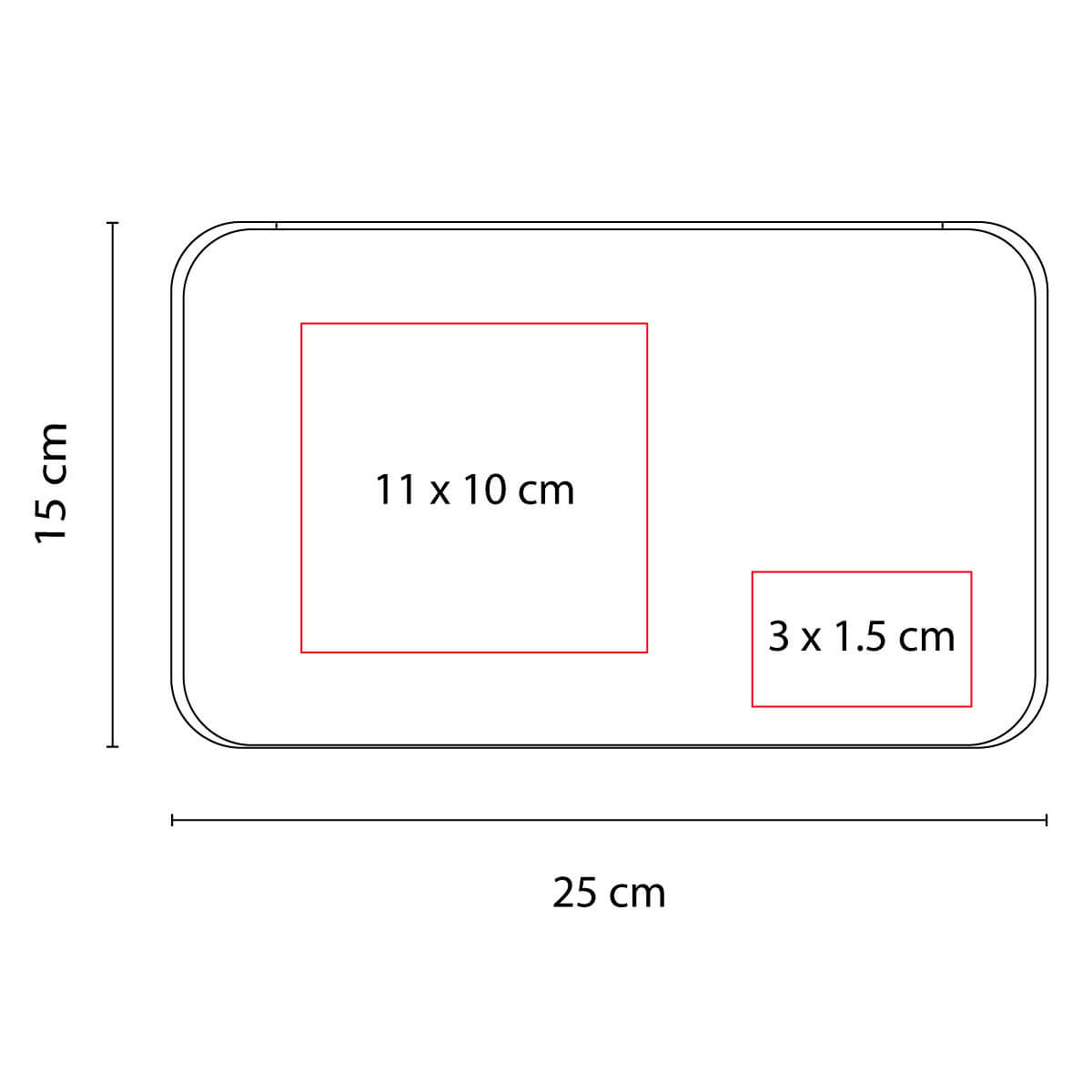 MATERIAL: Plástico / Poliéster / Metal MEDIDAS: 25 x 15 cm Estuche IMPRESION: Láser en Placa Metálica / Serigrafía en Estuche MED. EMPAQUE: 70 x 27.5 x 34 cm PESO EMPAQUE: 2.32 Kg PIEZAS EMPAQUE: 16