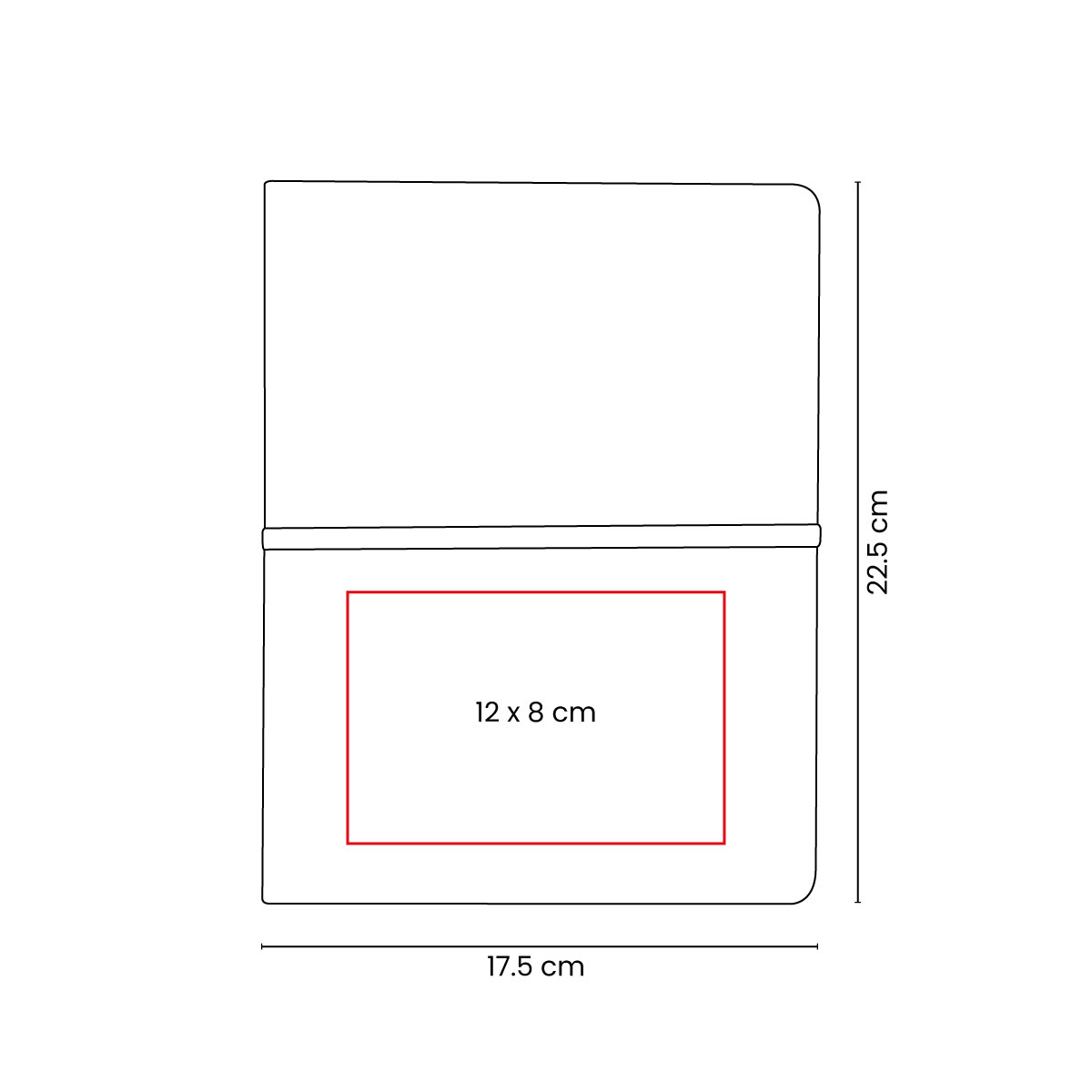 MATERIAL: Curpiel / Papel MEDIDAS: 17.5 x 22.5 x 1.7 cm IMPRESION: Serigrafía MED. EMPAQUE: 46.5 x 18.5 x 40.5 cm PESO EMPAQUE: 6.16 Kg PIEZAS EMPAQUE: 40