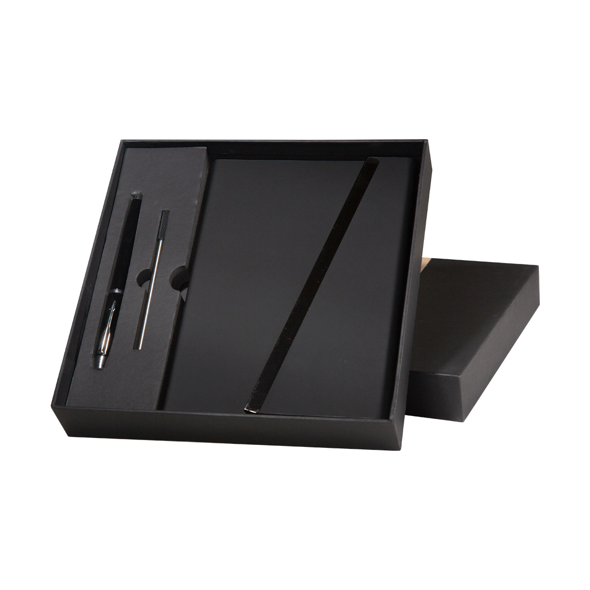 SET DE LIBRETA JINSEI - Set de regalo que incluye una libreta de 80 hojas a rayas, con pasta rígida y solapa magnética, un bolígrafo metálico y un repuesto de tinta adicional. Caja de regalo incluida.