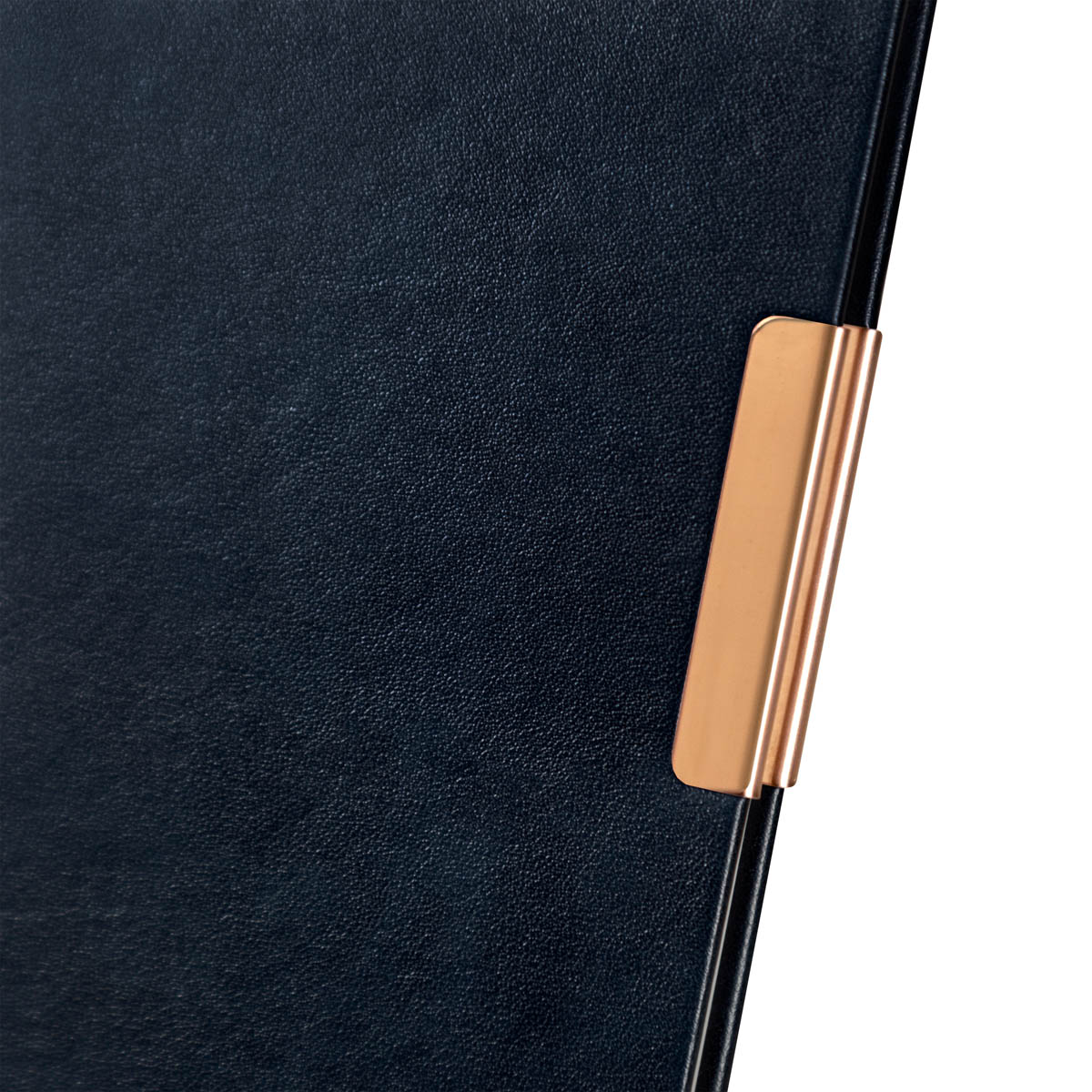 LIBRETA KOLM - Libreta con 80 hojas a rayas. Cubierta rígida con clip metálico y acabado en rose gold, que aporta un estilo ejecutivo y elegante. incluye un listón separador de hojas.