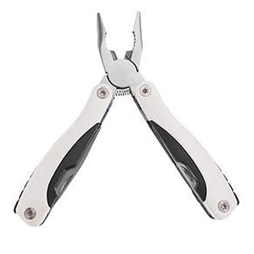 PAGONG Herramienta plegable con 9 funciones: lima, abre latas, doble destapador, sierra, desarmador de cruz, dos desarmadores planos, navaja, pinzas y seguro de bloqueo. Incluye funda.