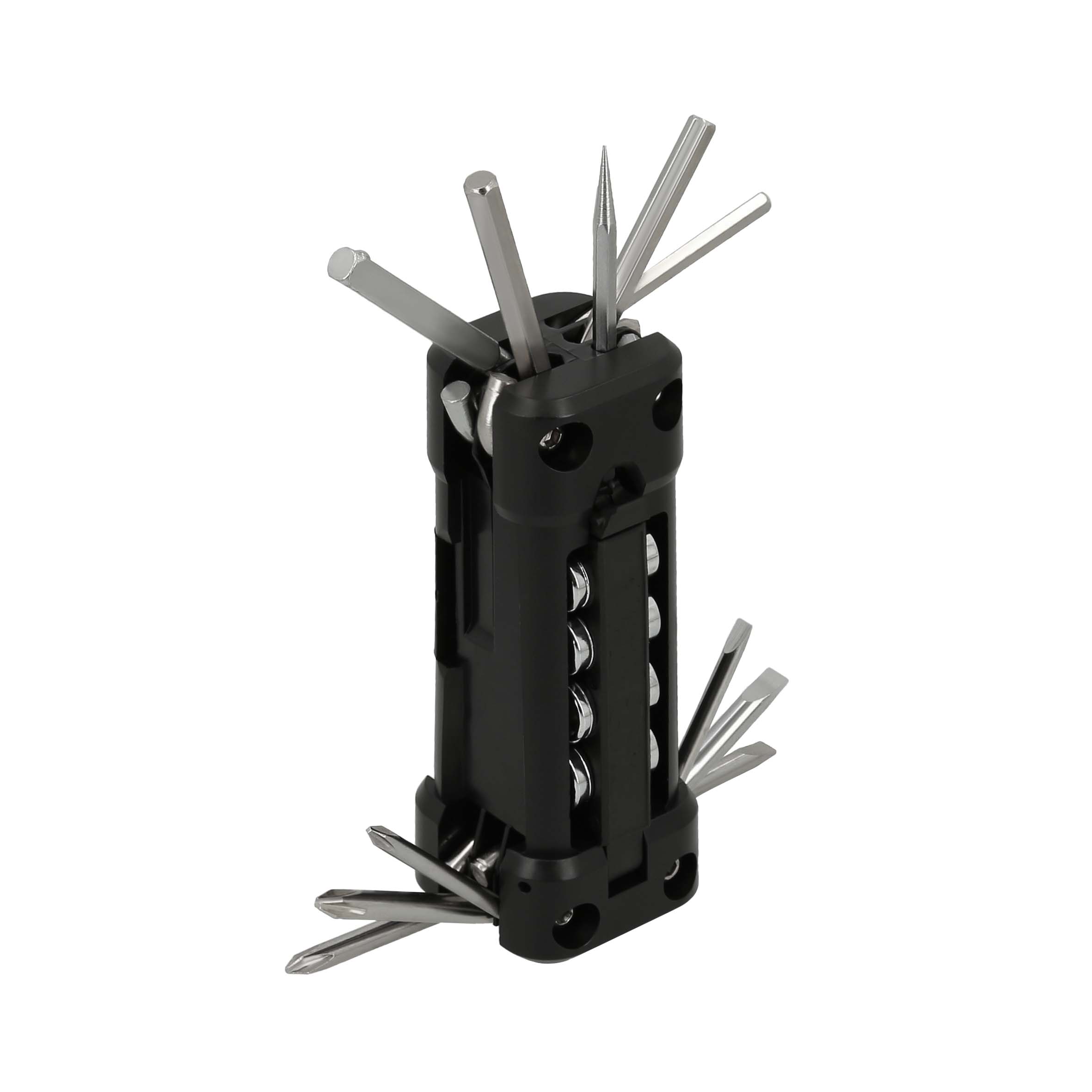RIDER Multi herramienta con llave inglesa, 5 llaves hexagonales, 4 dados, 3 puntas de cruz y 3 puntas planas.