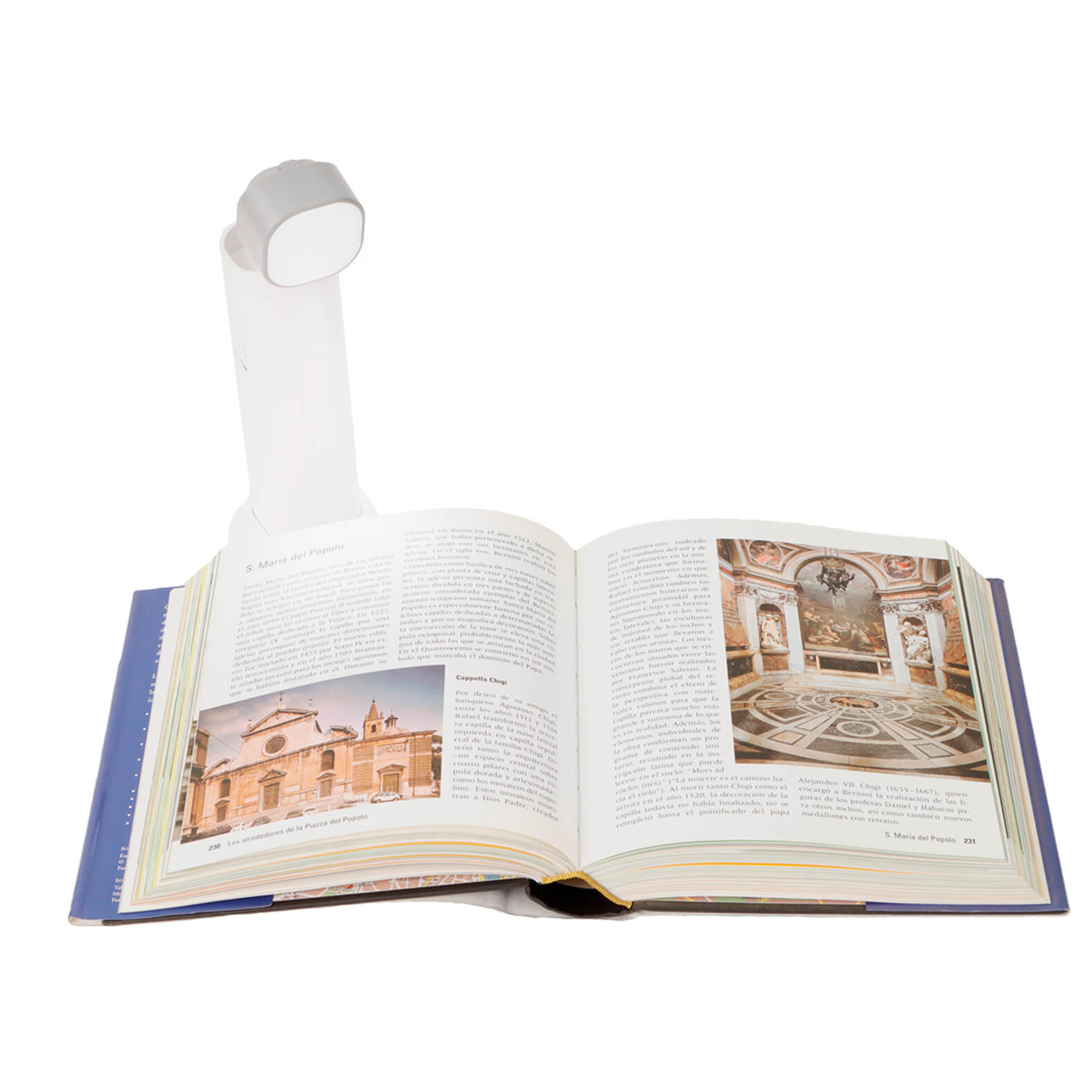 INDIANA Lámpara recargable de luz LED con 3 niveles de intensidad, plegable, base para soporte de celular y power bank.