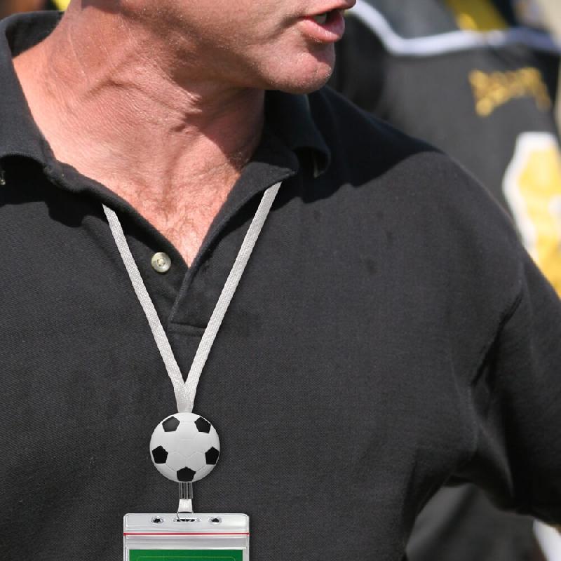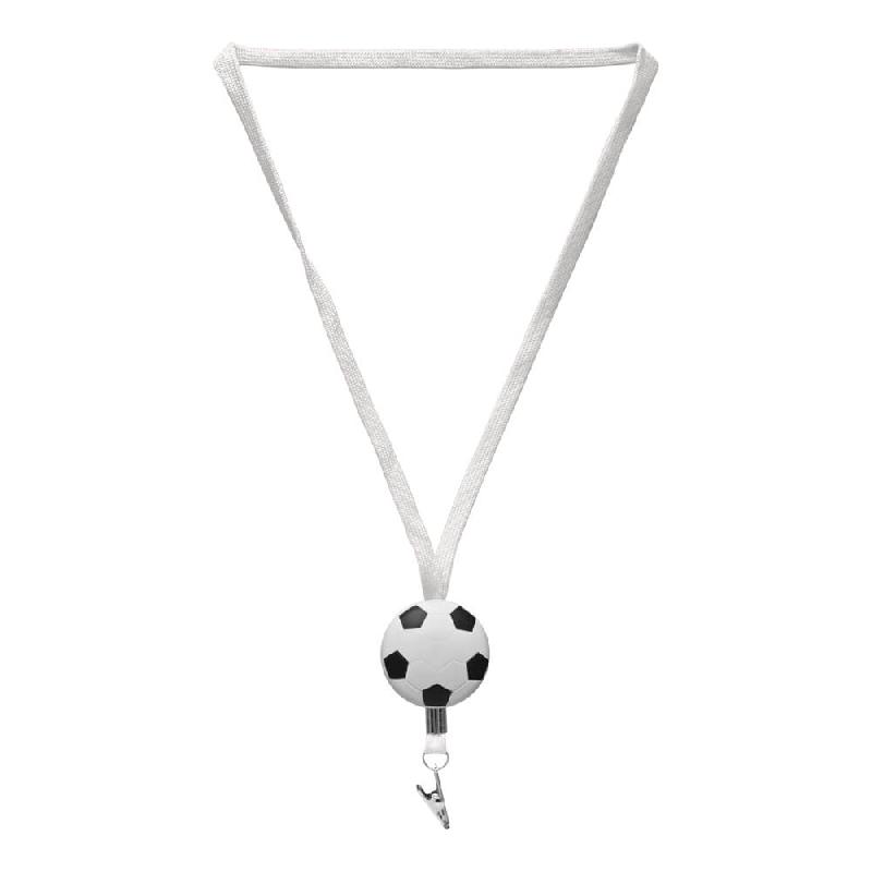 Porta gafete con balón de soccer. Medidas: 42.5 x 4.5 cm Material: Plástico. Empaque: A granel.