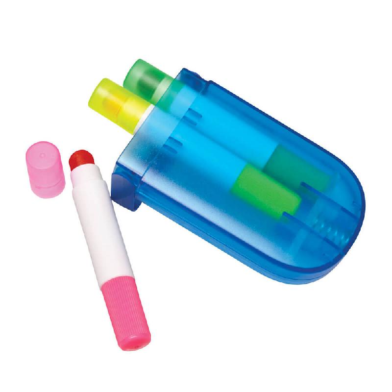 Marcadores de cera de larga duración. Medidas: 4 x 5 cm Material: Plástico. Empaque: Bolsa de celofán.