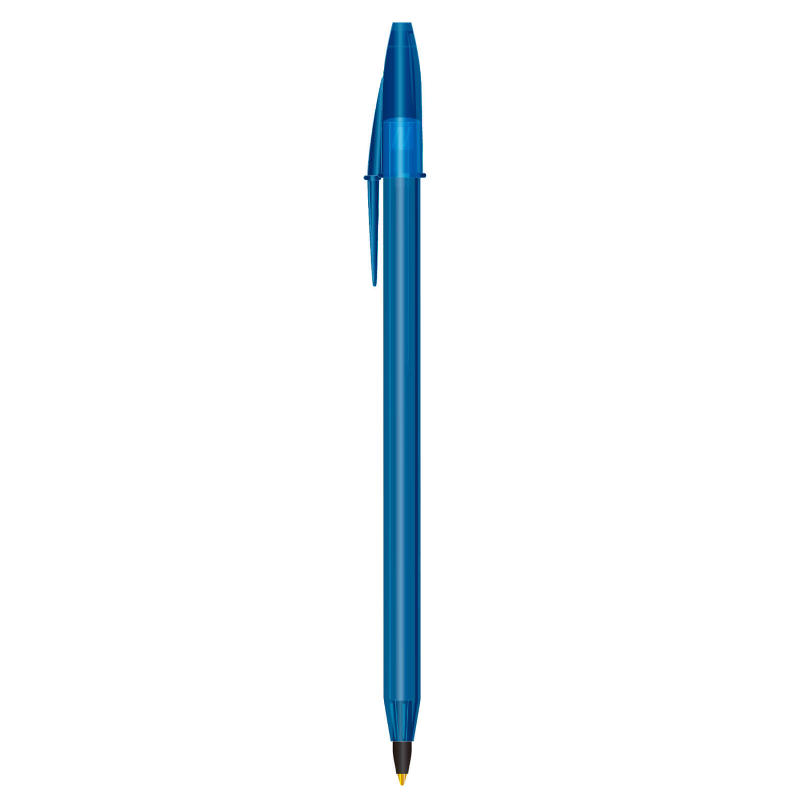 JOYAS Bolígrafo de plástico traslúcido de punto mediano (1 mm) con tapa. La compra mínima es de 300 piezas y no se realizan ventas sin impresión.