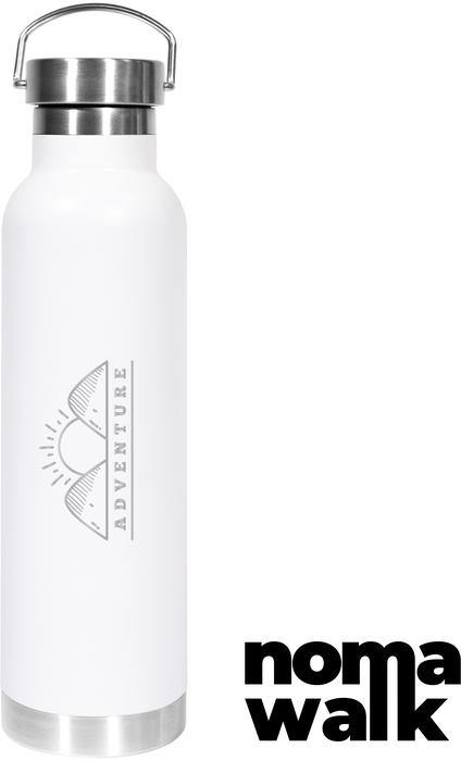 TERMO "HYDRO II" Botella doble pared, sellada al vacío. Interior en acero 304 y exterior en acero 201. Tapa de acero a rosca con manija rebatible metálica . La medida de este termo es tan practica que con el tendras el liquido necesario para estar hidratado en el momento del día que elijas. Mantiene hasta 12 hs la temperatura de las bebidas calientes y 24 hs de las bebidas frías. Presentación en caja de regalo.