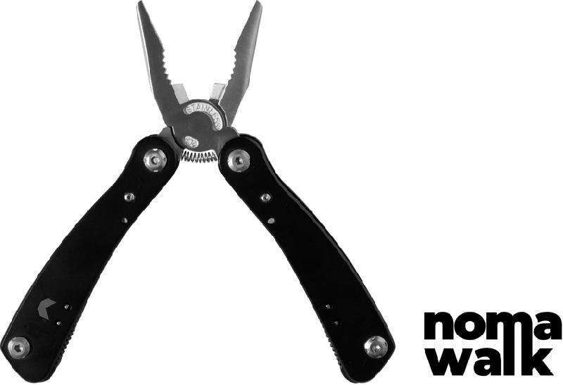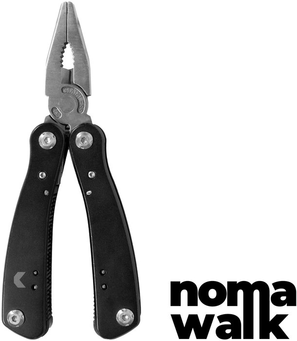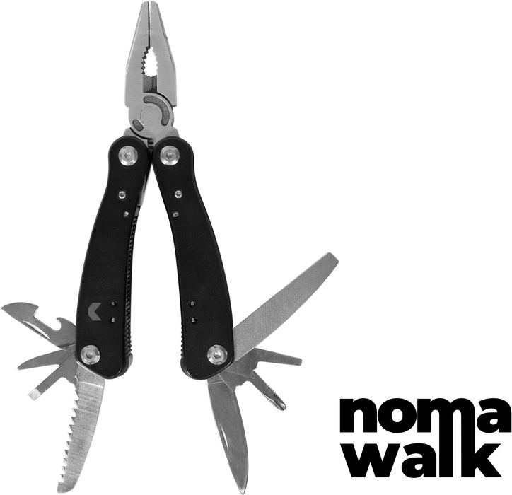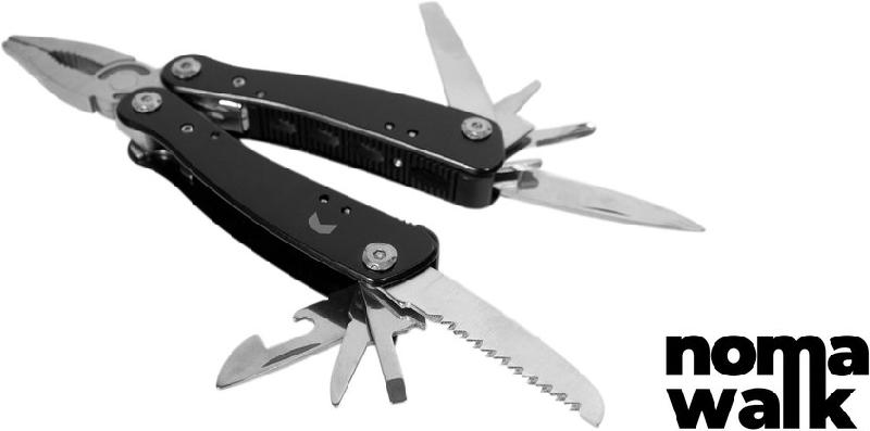 MULTIHERRAMIENTAS "IDEAL TOOLS" Multiherramientas con 9 herramientas: Pinza con alicate, sierra, destornilladores punta plana, destornillador punta philips, destapador, lima, navaja y abre latas. Con funda negra. Ideal para llevarla en el auto o comenzar una gran aventura. Presentación en caja de regalo.