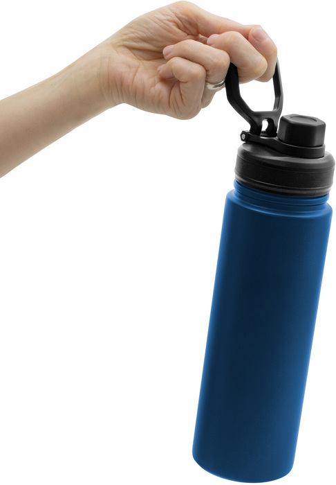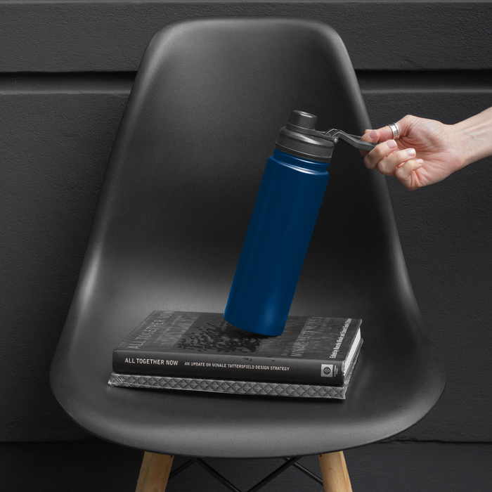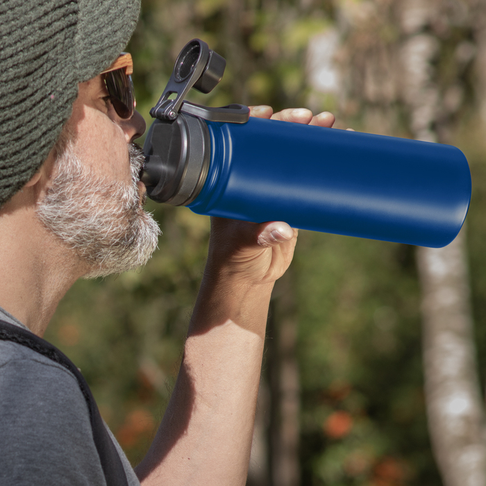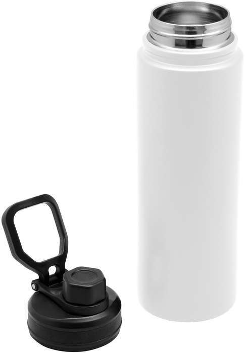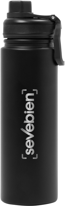 BOTELLA TÉRMICA "KING". Botella doble pared, sellada al vacío. Interior en acero 304 y exterior en acero 201. Tapa con anillo de silicona, boquilla con cierre a rosca antiderrame y manija plástica para su agarre. Mantiene hasta 12 hs la temperatura de las bebidas calientes y 24 hs de las bebidas frías. Presentación en caja de regalo.