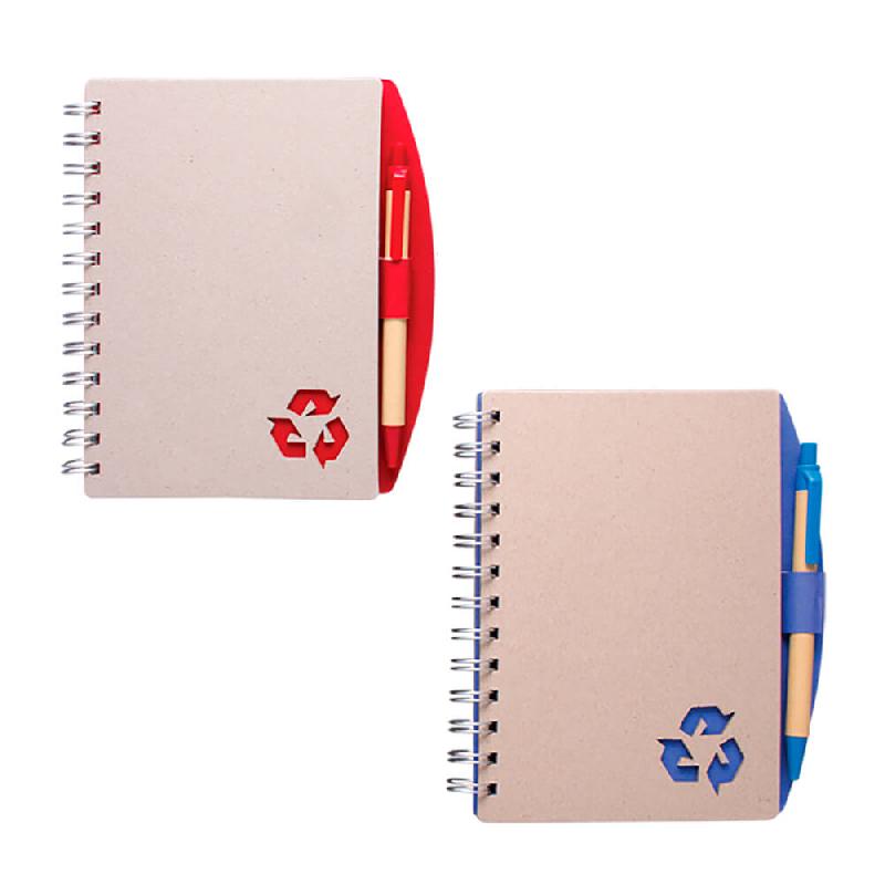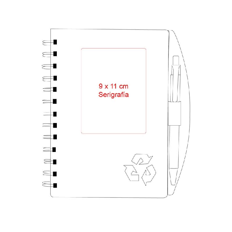 Libreta fabricada en papel reciclable, Medidas: 15 x 17.5 cm Material: Papel reciclable. Empaque: Bolsa de celofán.