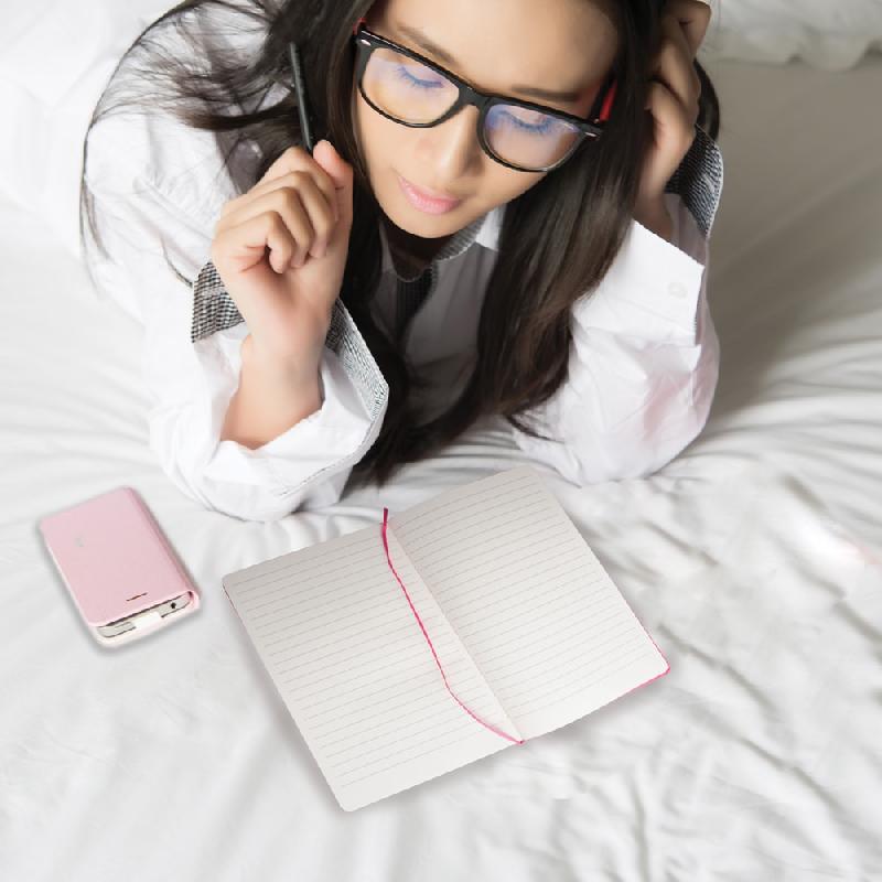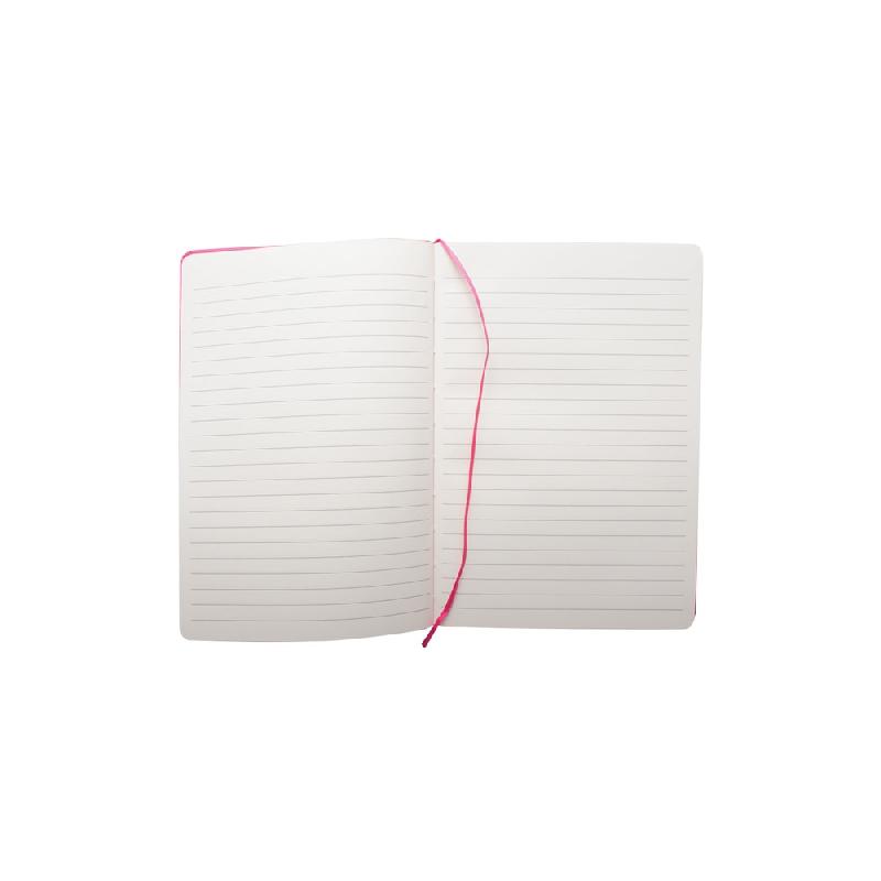Libreta clásica con cubierta de pasta dura, 80 hojas de raya. Medidas: 21 x 14 cm Material: Papel y carton forrado. Empaque: Bolsa de celofán.