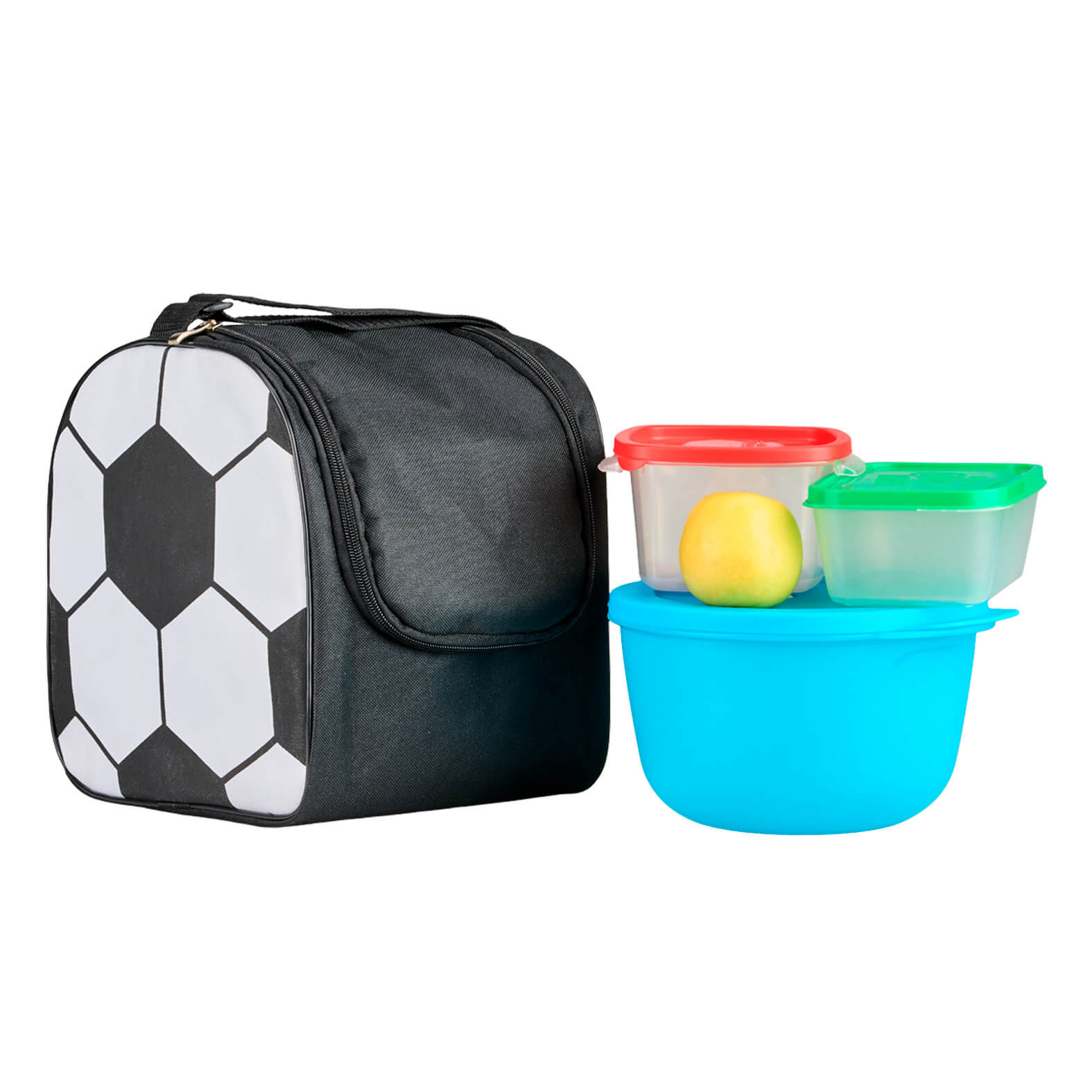 CAFÚ Lonchera con un compartimento, interior permeable, cierre, print de balón de soccer en los laterales y correa ajustable.