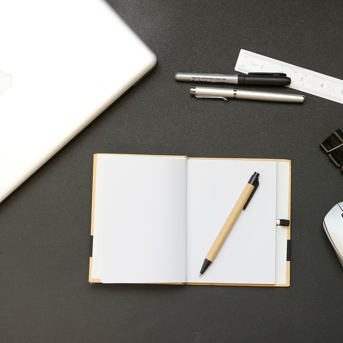 Libreta ecológica. - Libreta ecológica con pasta rígida de papel Kraft y 70 hojas blancas de papel de 70 g. Incluye bolígrafo con barril de cartón y detalles en plástico ABS, tinta de escritura negra.