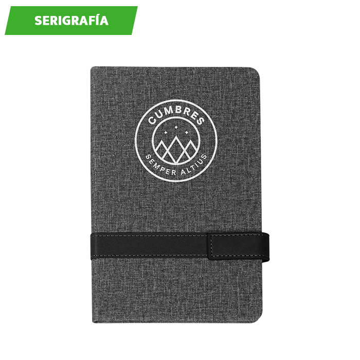 Libreta Evora. - Libreta fabricada en tela, con broche de color en curpiel . Cuenta con separador de hojas el cual va a juego con el broche para cerrar , 80 hojas de raya. Tamaño A5.