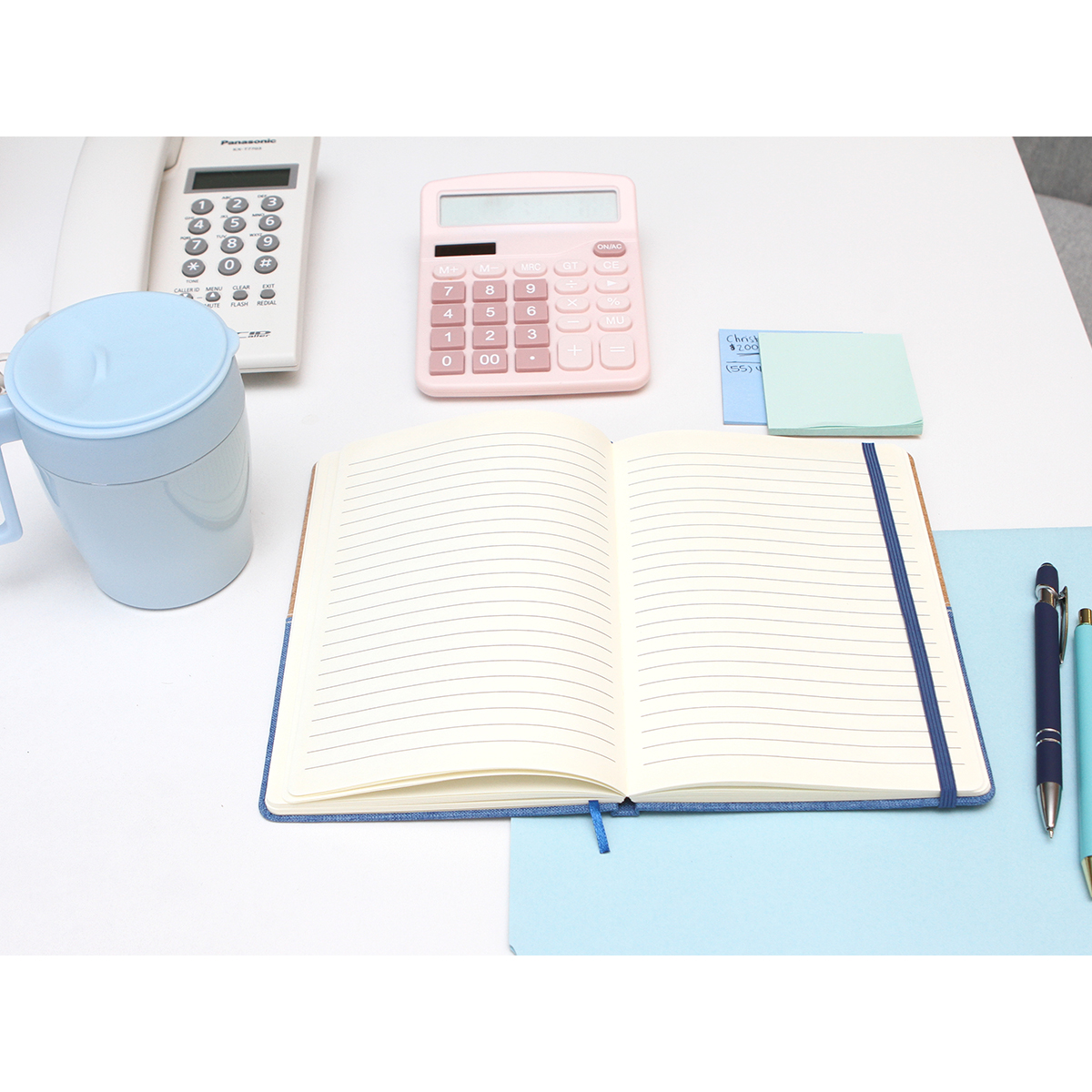 Libreta corcho bi tono. - Libreta bi tono con pasta de corcho y poliéster, elegante y funcional con un resorte sujetador y un listón separador de hojas, que te permite mantener tus notas y páginas organizadas. Con 80 hojas de papel amarillo de 70 gramos, esta libreta ofrece un amplio espacio para tomar notas. Tamaño A5 lo que la hace compacta para llevarla contigo a todas partes.