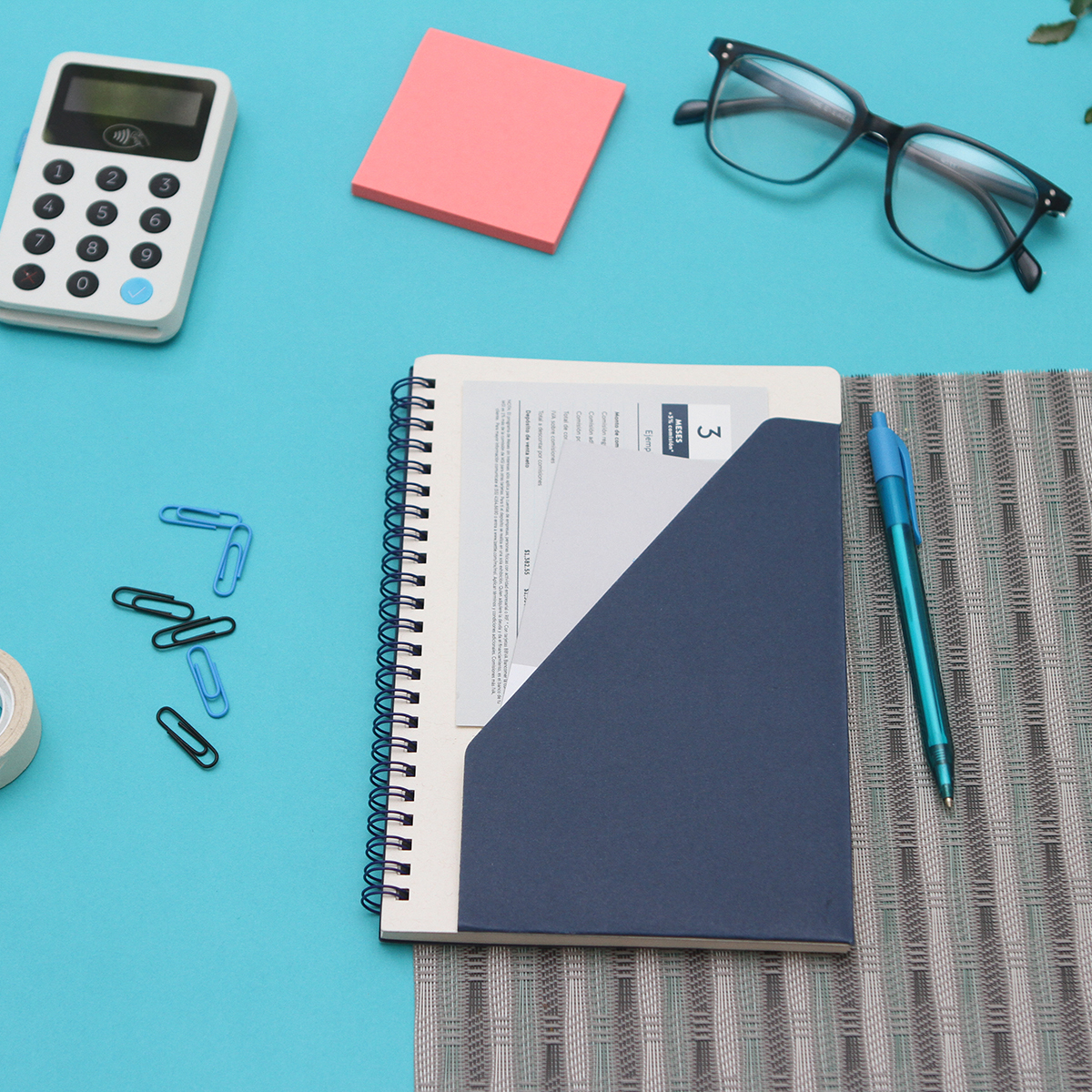Libreta Pontevico. - Libreta fabricada con cartones de leche, lo que la hace amigable con el medio ambiente, con espiral metálico, lo cual hace que sea resistente y duradero, con Hojas rayadas.  En la pasta se encuentra un compartimiento/sobre para guardar tu documentos.