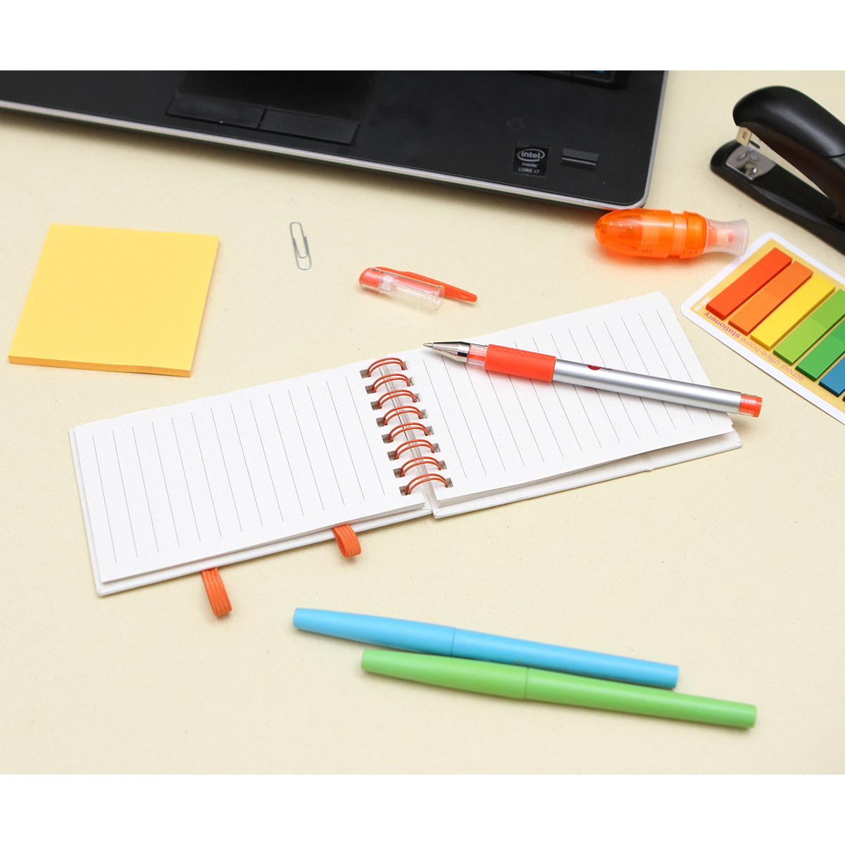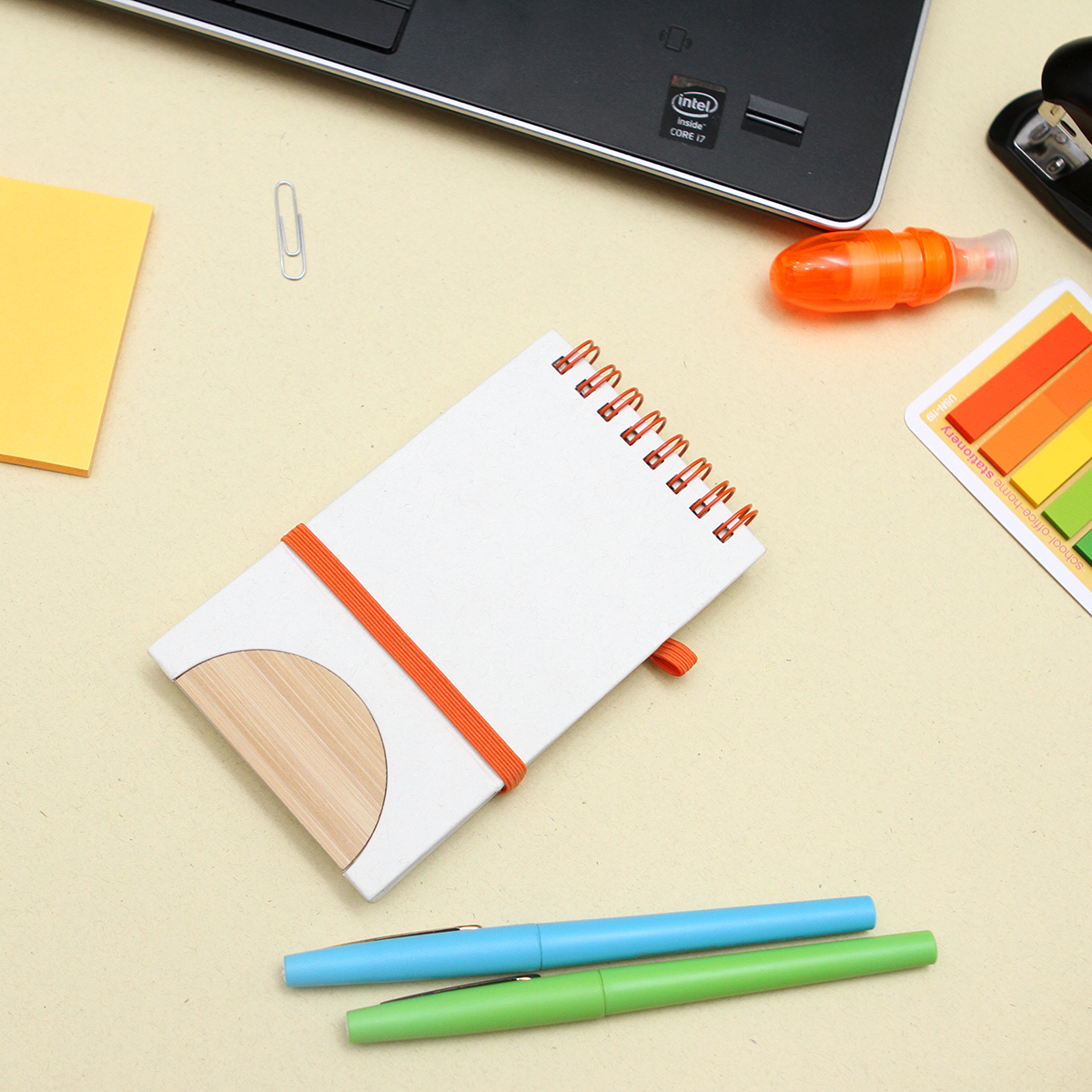 Libreta Brianza. - Libreta fabricada con cartones de leche, con detalle de bambú en la parte inferior, espiral metálico y banda elástica, cuenta con 70 hojas rayadas de papel de 80 g. fabricadas con cartones de leche.