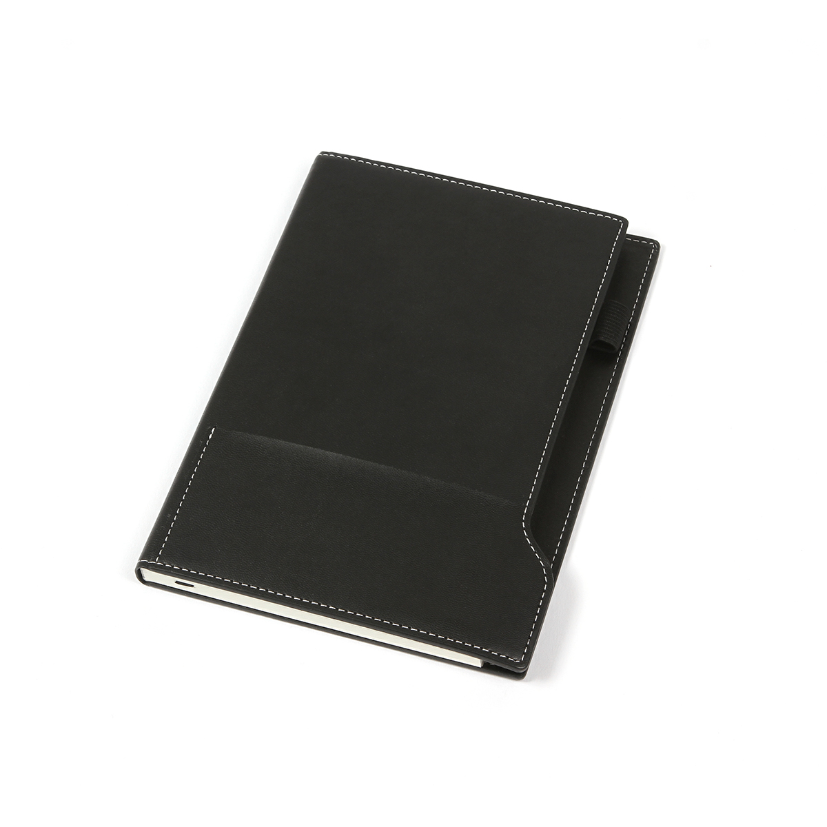 Libreta Zabbar. - Libreta con cubierta fabricada en PU combinada con cartulina, elástico para bolígrafo y bolsillo. Interior: papel crema de 80 g, 80 hojas rayadas. Páginas finales: marcador de cinta de papel en blanco color crema de 150 g.