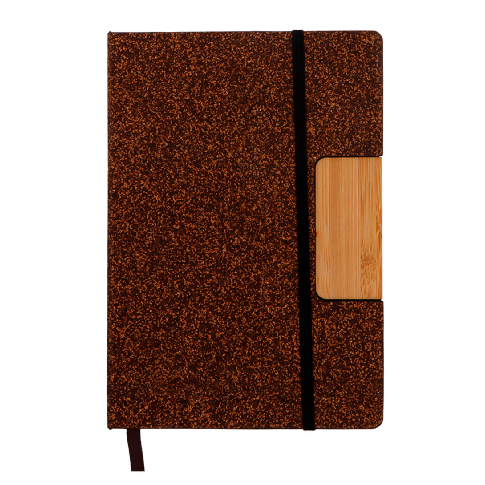 BADA Libreta reciclada de café con 82 hojas de raya, detalle de bambú que sirve cómo soporte para celular, separador y banda elástica.