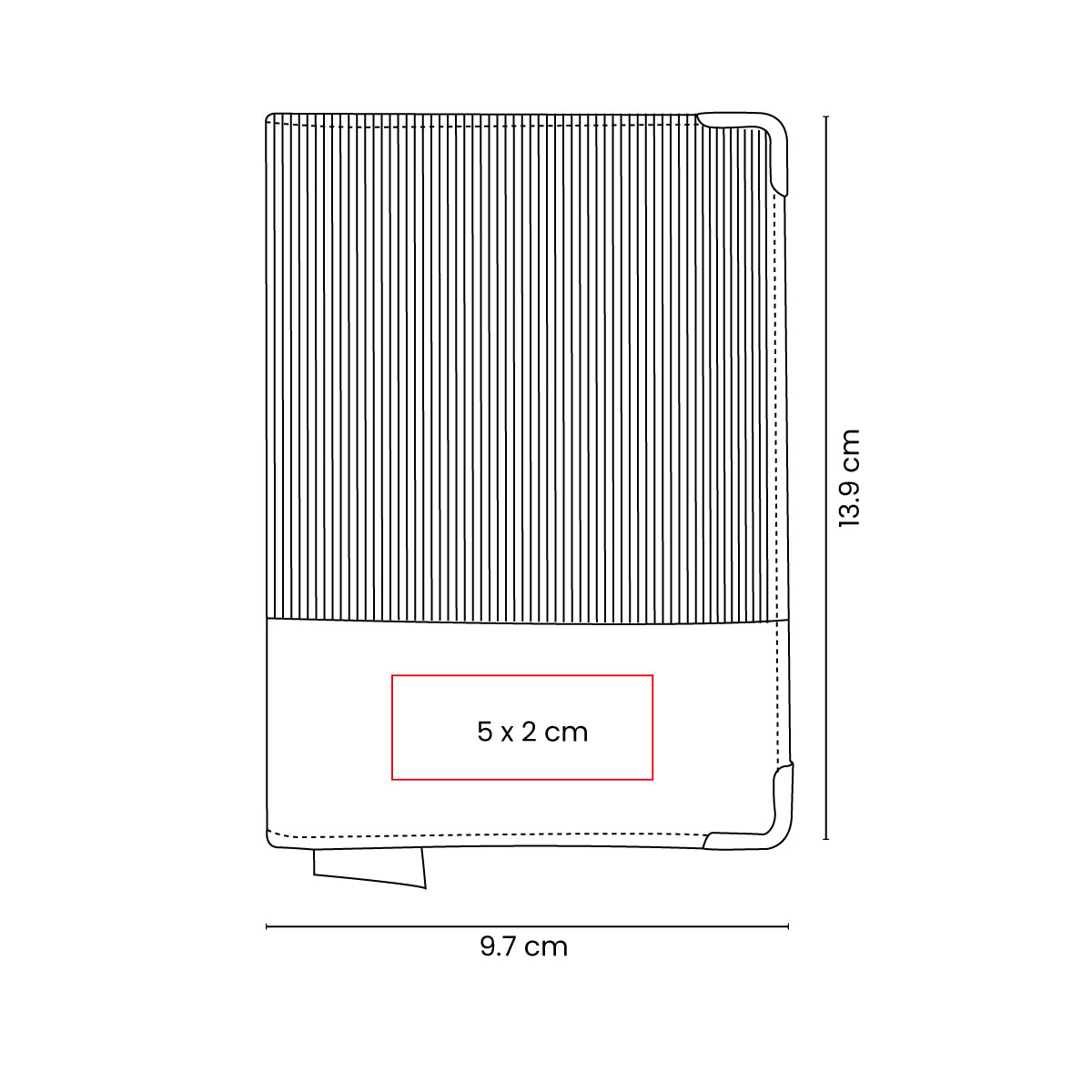 MATERIAL: Curpiel MEDIDAS: 9.7 x 13.9 cm IMPRESION: Serigrafía / Termograbado MED. EMPAQUE: 32.4 x 17.5 x 22.2 cm PESO EMPAQUE: 4.1 Kg PIEZAS EMPAQUE: 100