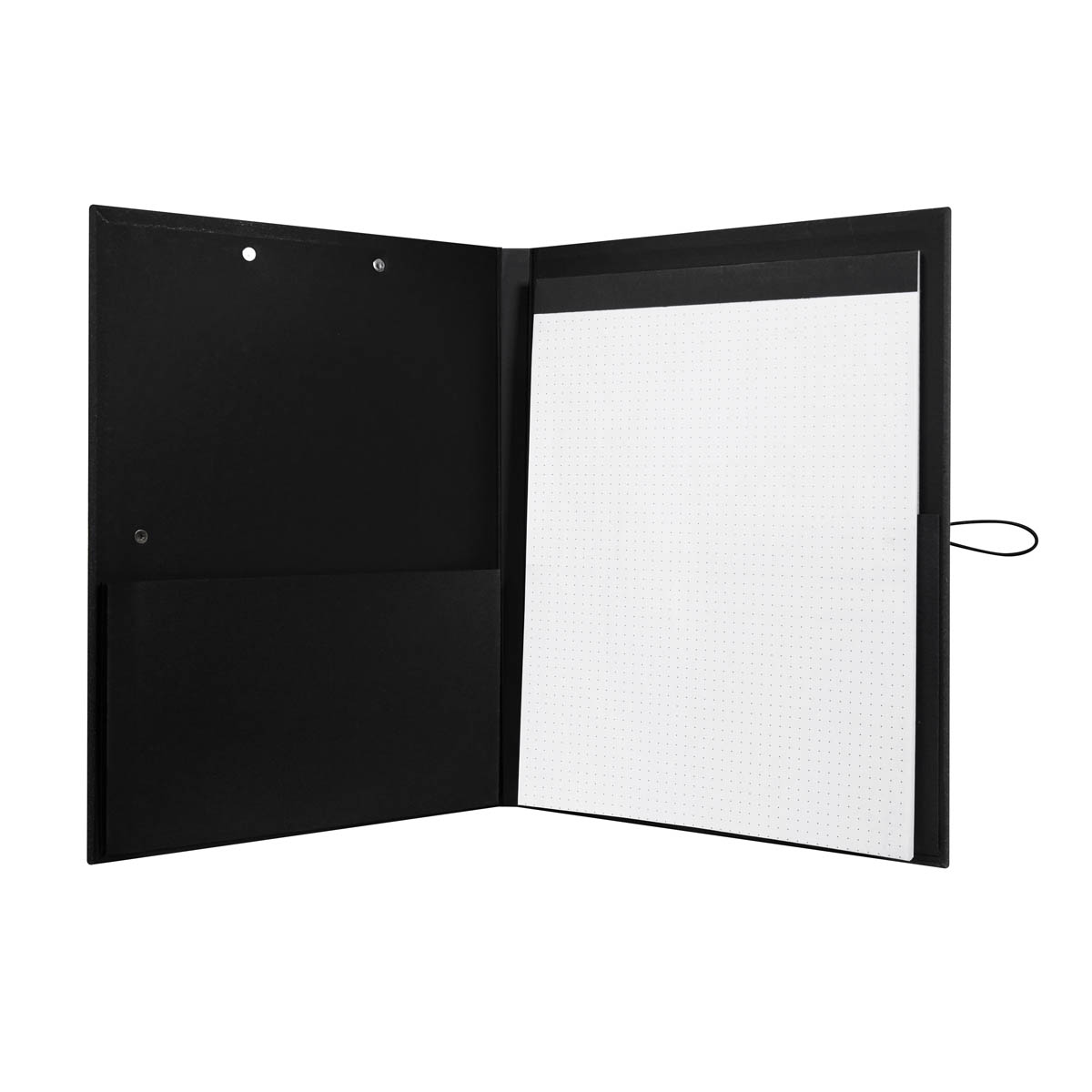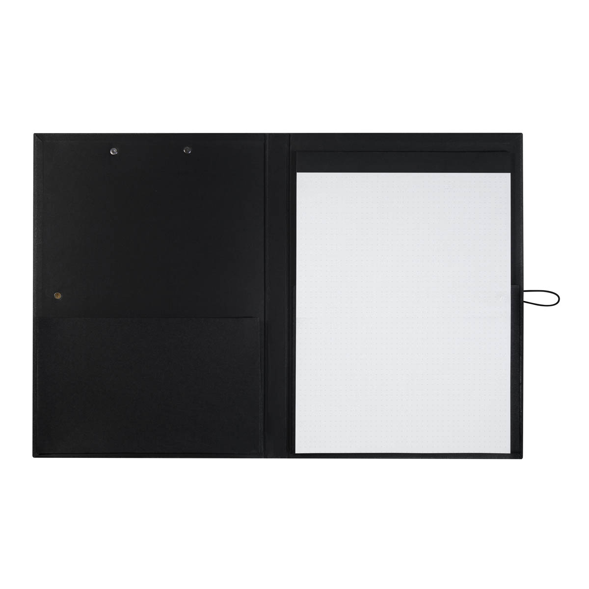 CARPETA RENDES - Carpeta con práctico clip metálico y soporte retráctil en la parte superior. Incluye block de 30 hojas con retícula de puntos y compartimento interno. Su elástico ayuda a mantenerla cerrada y evitar extraviar documentos. Utilizala como carpeta o como tabla para encuestas, ideal para entornos profesionales o académicos.