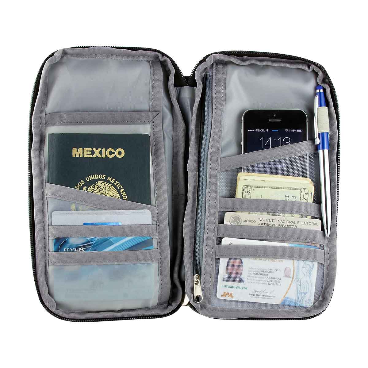 PORTA PASAPORTE SKANA - Compartimento para pasaporte, visa, boleto de avión y tarjeta de crédito. Incluye correa.