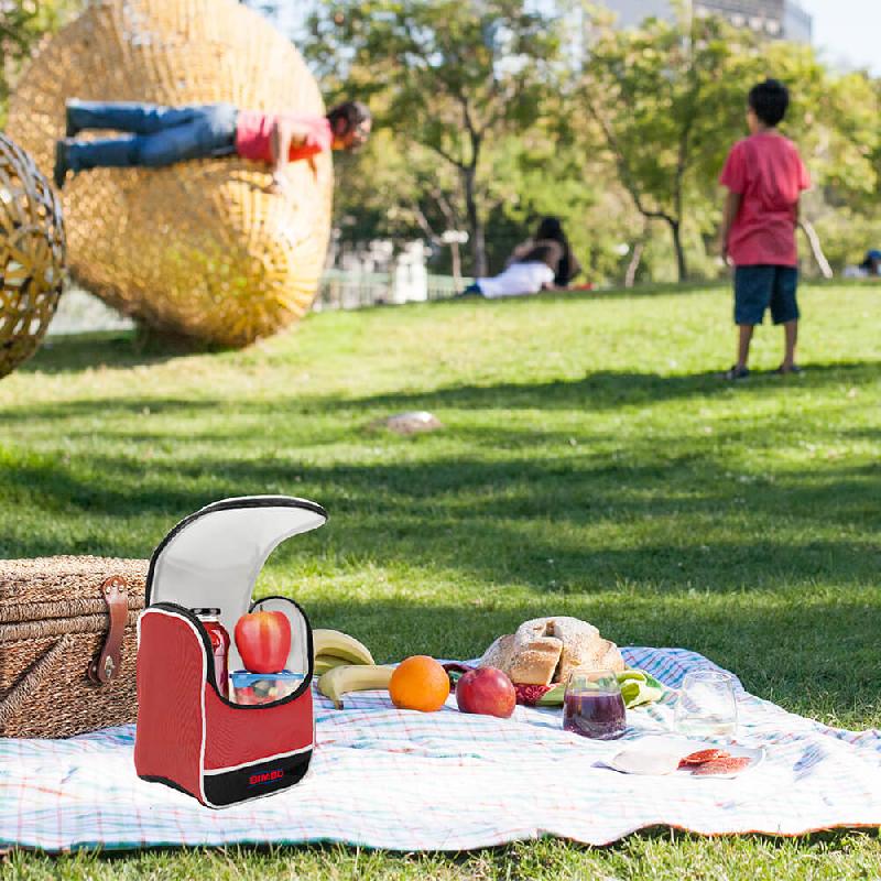 Lonchera con cierre y asa para fácil agarre. Medidas: 18 x 22 x 14 cm Material: Poliester.