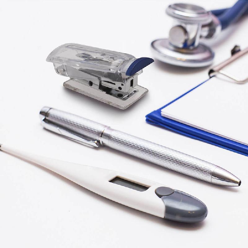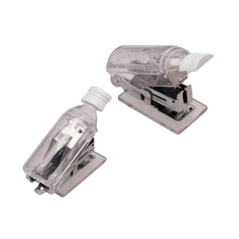 Mini engrapadora en forma de ampolleta. Medidas: 7.5 x 4 x 3 cm Material: Plástico.