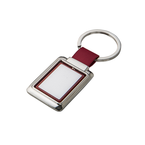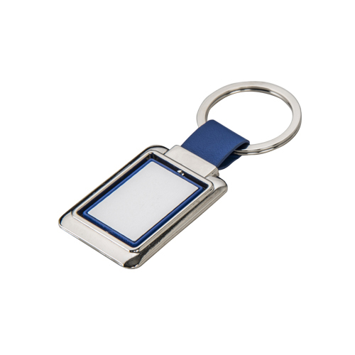 WIKI Llavero metálico de forma rectangular con centro de color, giratorio, cinta y arillo reforzado para colgar.
