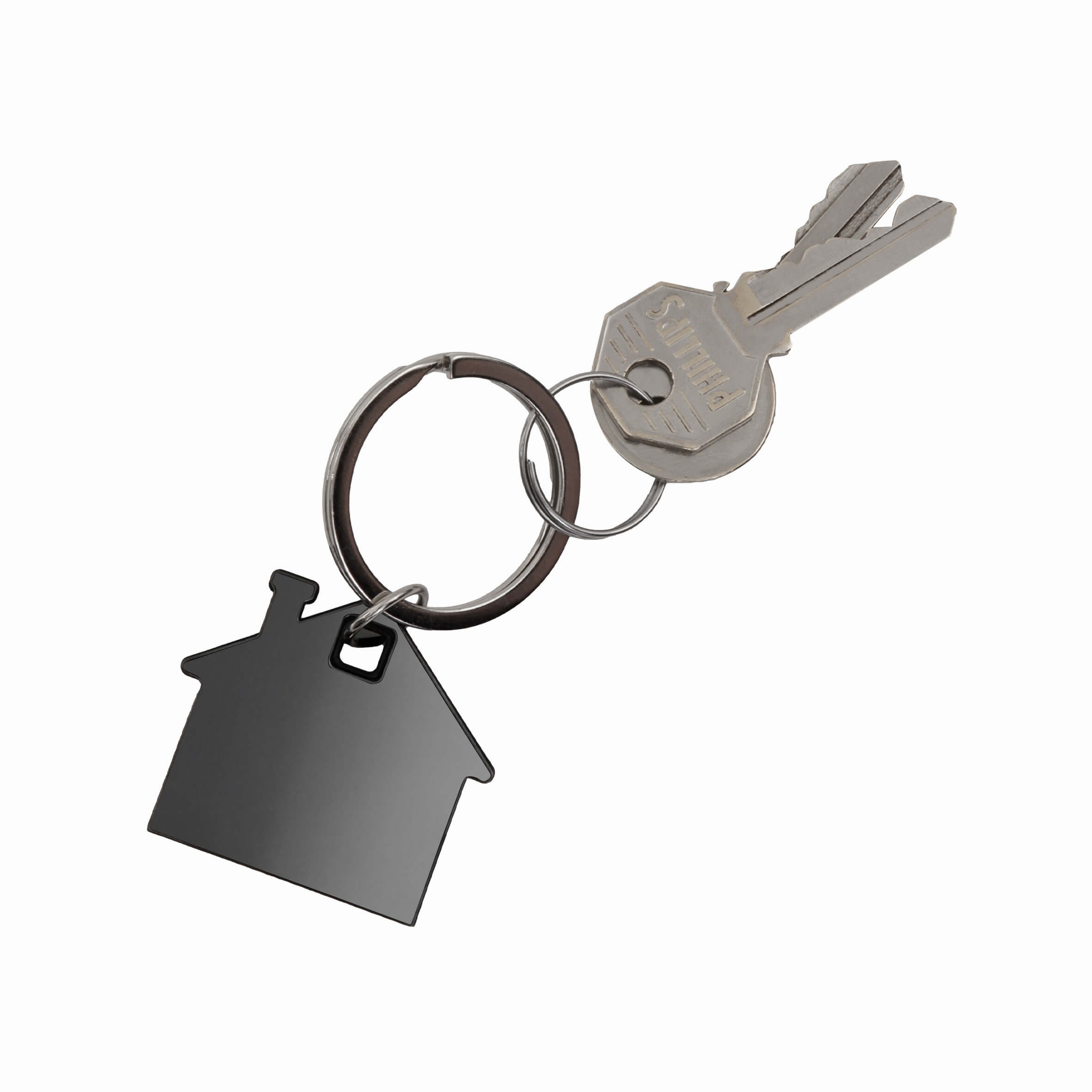 TESSA Llavero metálico con diseño en forma de casa y acabado espejo.